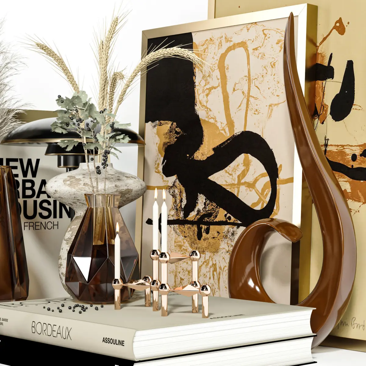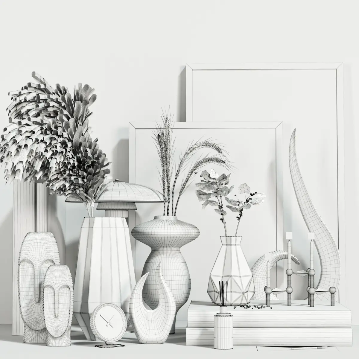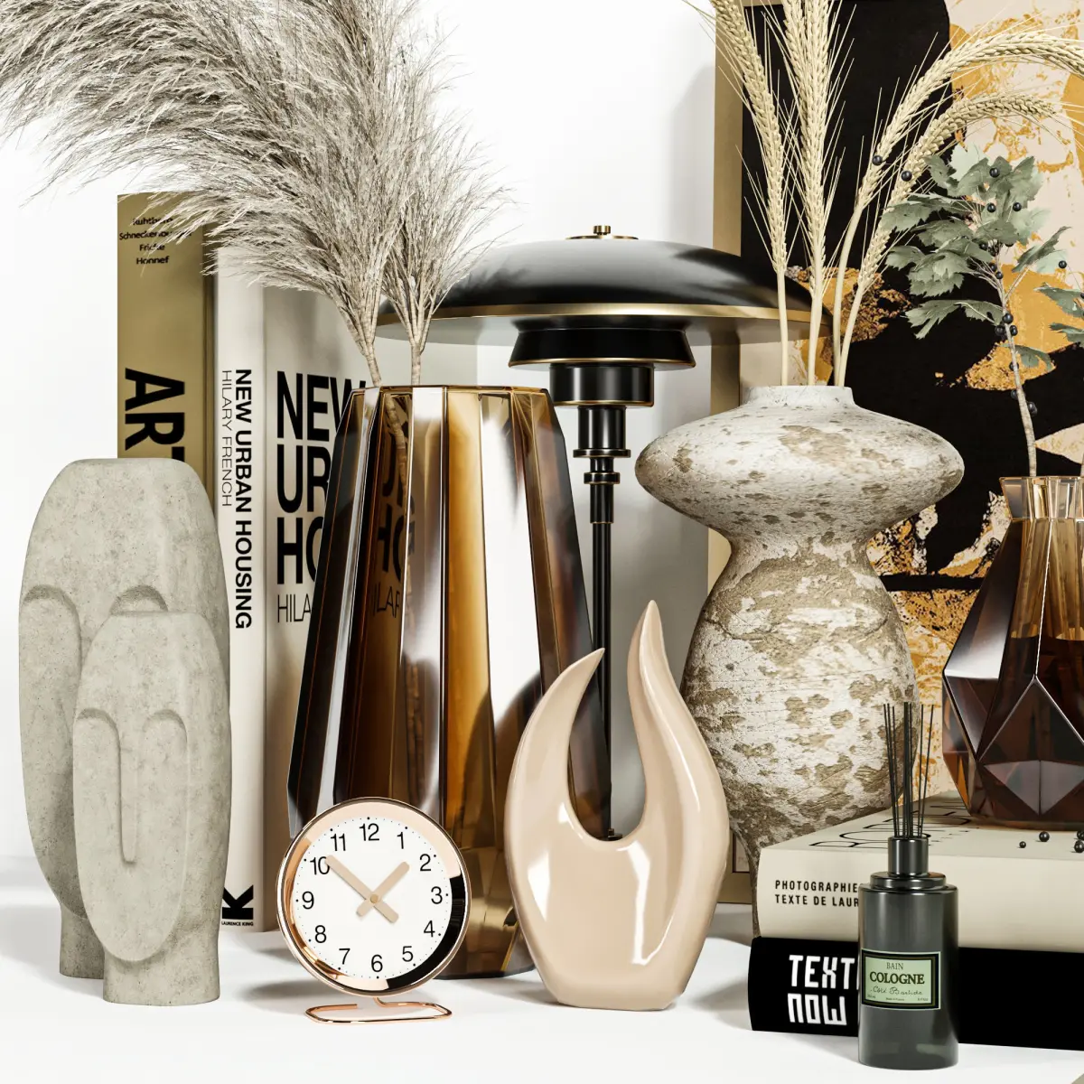 - contains about 20 PIECES like books, vases, panels, dried flowers and etc.
