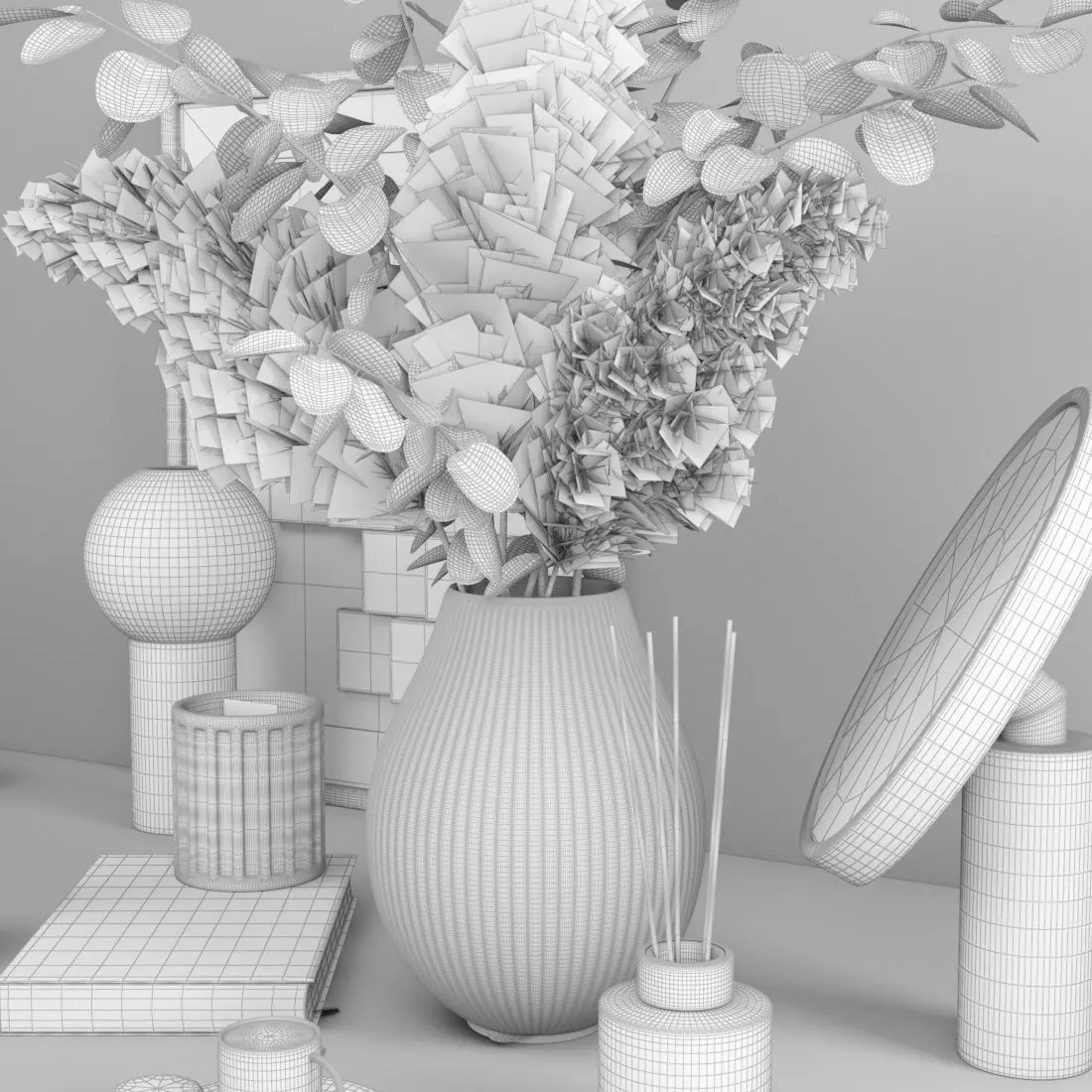 decorative set with bouquet 11 model file : 3ds max 2015 version , fbx formats , obj formats , dwg format and maps folder