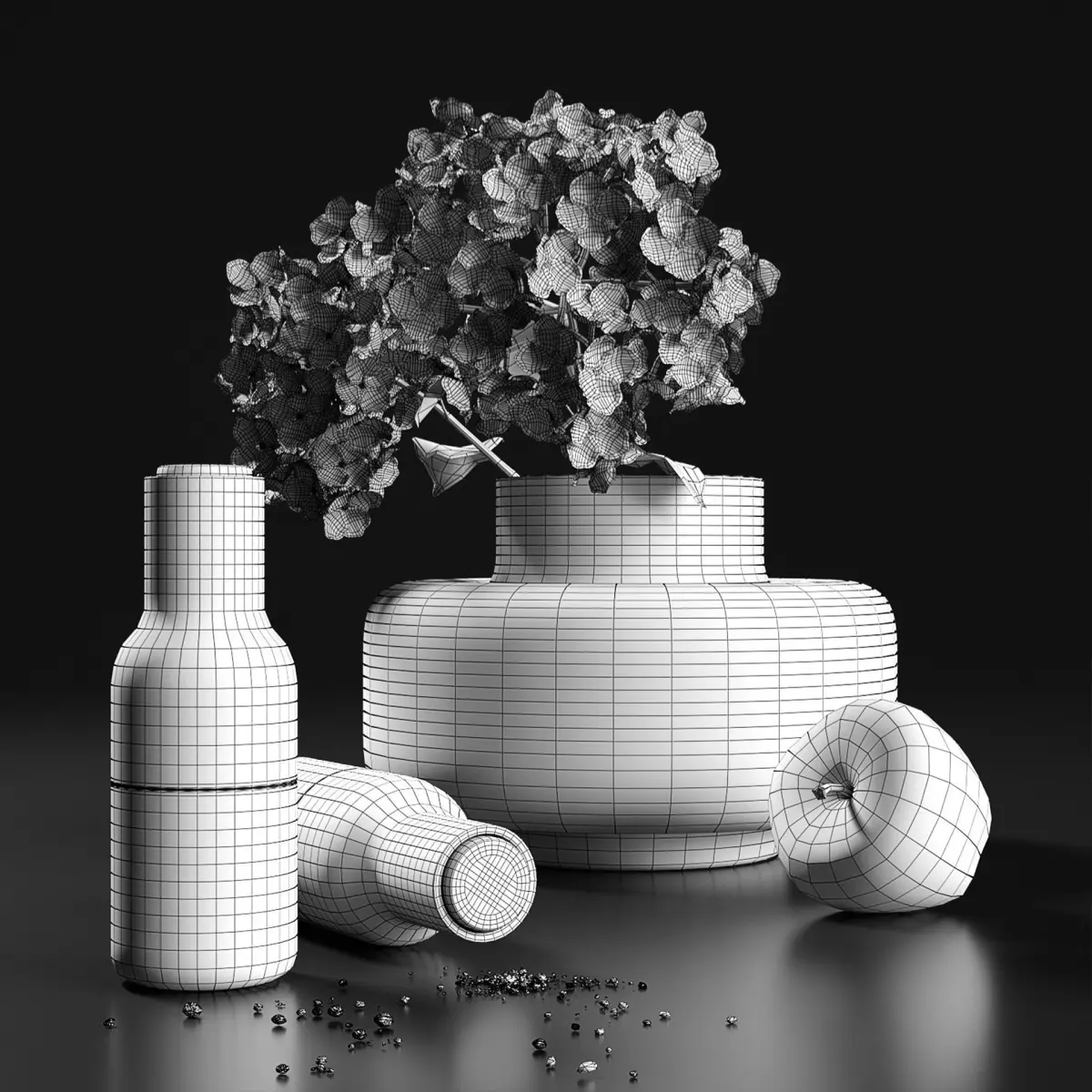 The model is made under smoothing, so you can control the density of the grid for a particular frame. The smoothing modifier is enabled (display in the viewport - 0 iterations, on the render 1 iteration)
