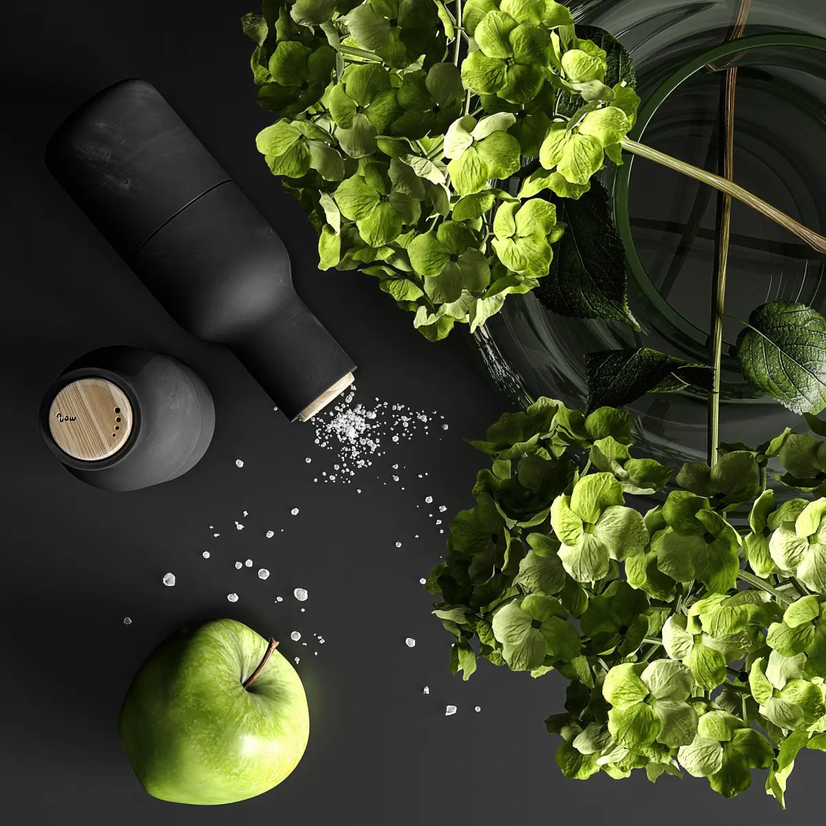 Decorative set with hydrangea in a vase