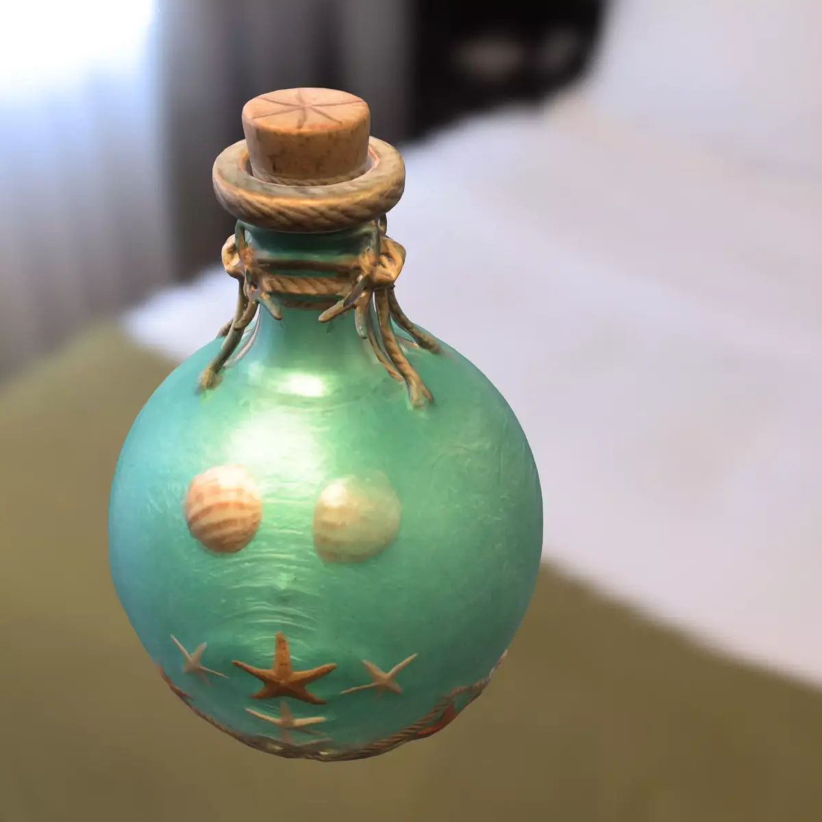 High-quality 3D model of a decorative ocean-themed potion bottle with embossed starfish and seashell details. Ideal for use as a collectible, decorative prop, or magical item in games such as Sea of Thieves, The Legend of Zelda, Skyrim, World of Warcraft, and The Sims 4. Optimized for major game engines including Unity, Unreal Engine, and Godot. This asset is also ready for 3D printing to create a physical replica. Available in OBJ, FBX, STL, DAE, PLY, GLB, and Blender formats.