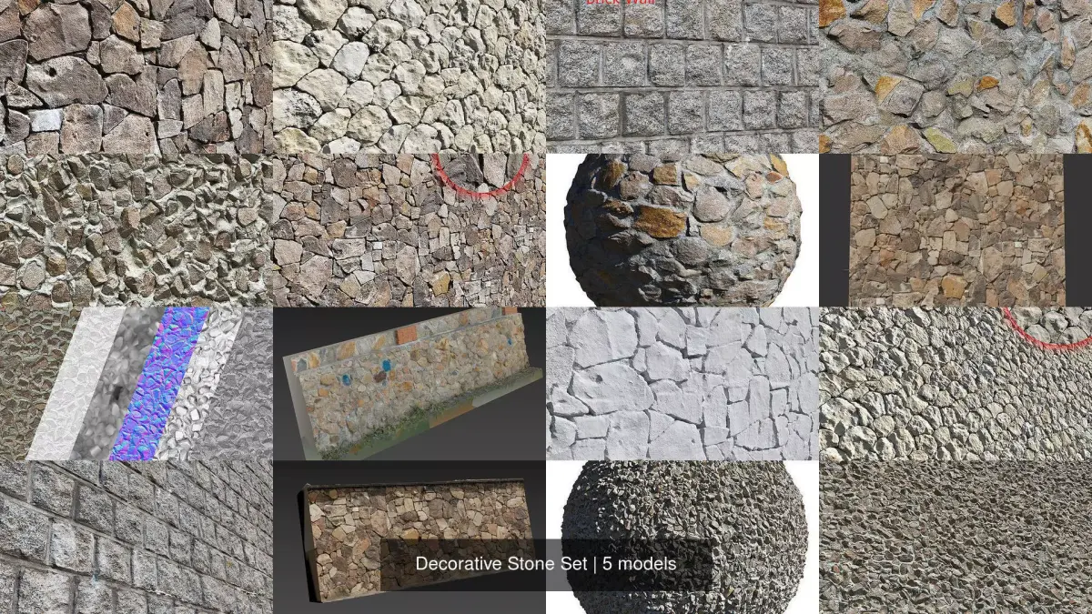 A realistic set of decorative stone masonry textures ! They can be used both in Visualizations and in game engines of the new generation .