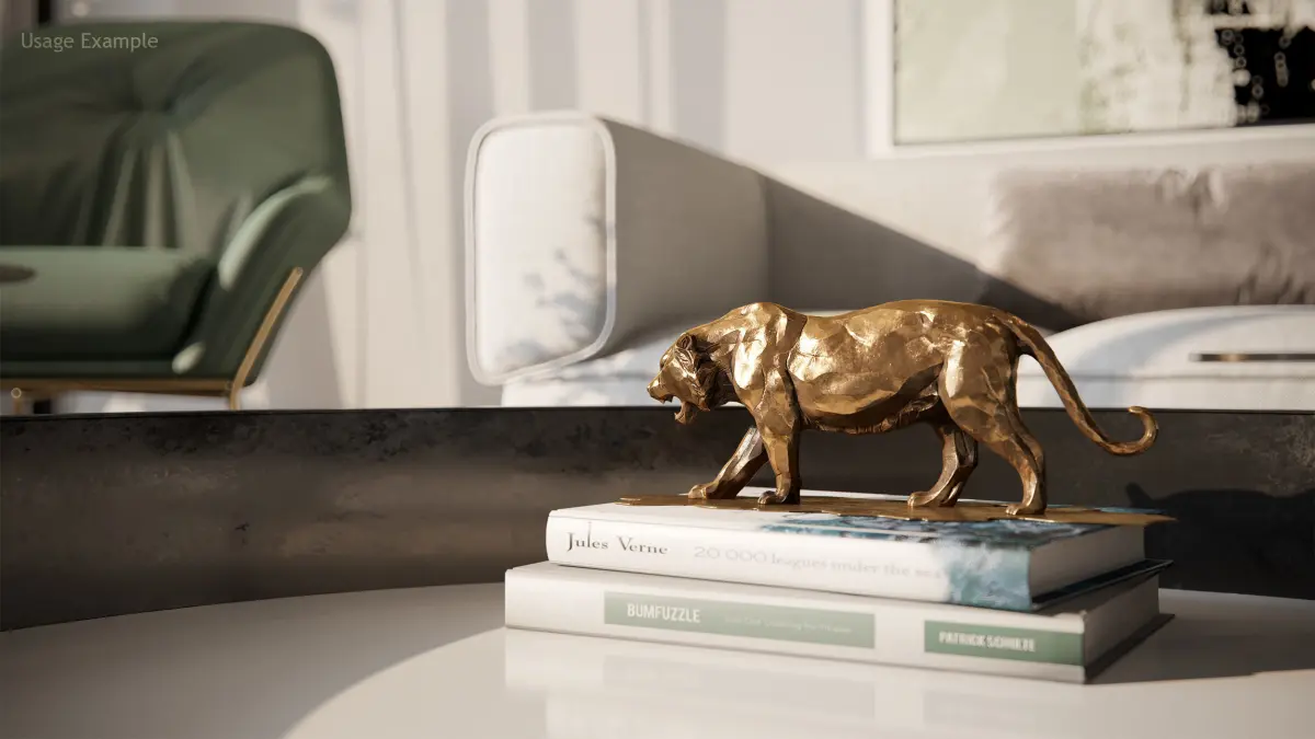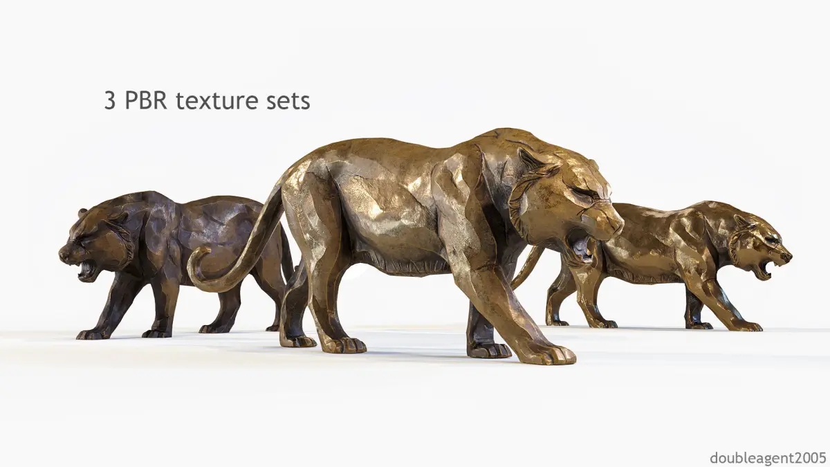 Stylized Tiger statuette. Baked normals, UVW unwrapped, 4k PBR-maps, lightweight model. You can use it for your CG-rendering projects, games. Three types of PBR material. Ready to render : Blender, C4d, V-ray, Corona Renderer. Game Ready: 7 010 polys \ 6 695 verts.