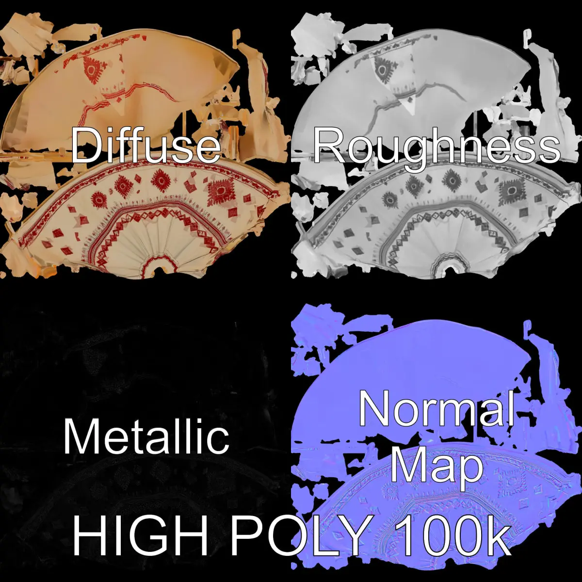 This Decorative Tipi Tent 3D Model Pack provides three levels of detail: low-poly for mobile use, middle-poly for environmental settings, and high-poly for production rendering in software like 3ds Max, Maya, and Blender. It's perfect for use in game development with Unity and Unreal, as well as interactive presentations. The model features PBR textures, including Diffuse, NormalMap, and metallic maps, all optimized for modern rendering engines. Each model comes with accurate unwrapped UVs without overlap. The texture resolution is 4096x4096, ensuring high-quality details for all applications. The first image is the reference used for creating the 3D model. It is important to carefully evaluate the quality of the model by examining the preview images that display the topology and polygonal mesh. These previews (WIRE and WEB 3D Preview) clearly demonstrate how accurately the model matches the original reference and how well the geometry has been executed. We invite you to like and leave a comment about the model if you find it useful for your projects.