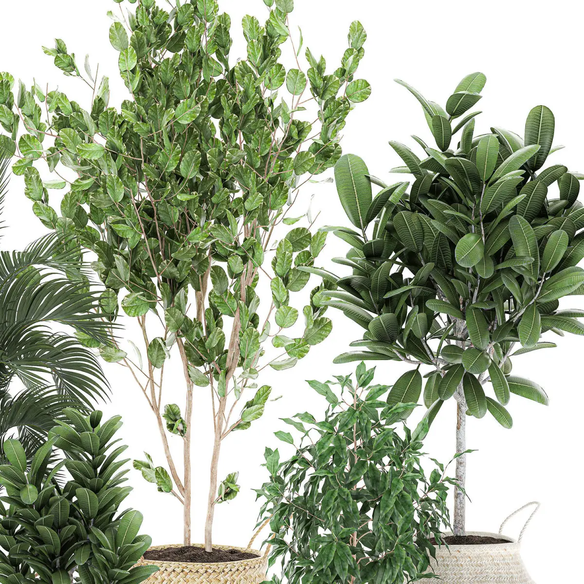 Decorative plants for the interior in baskets.Houseplantsexotic plantsTropical plantsPotted interior treesfrangipaniplumeriafrangipani treeFicus benjaminaHowea forsterianaDate palm