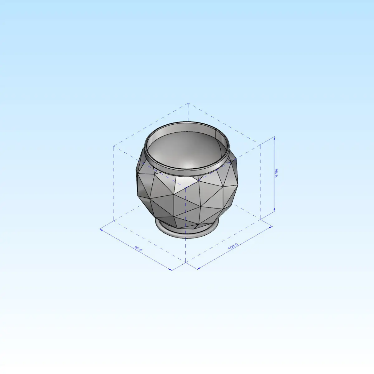 This is a decorative triangulated succulent pot container. This is perfect for someone looking to spice up their decorations with some geometric container pots. All models in my store are 3d Print ready.