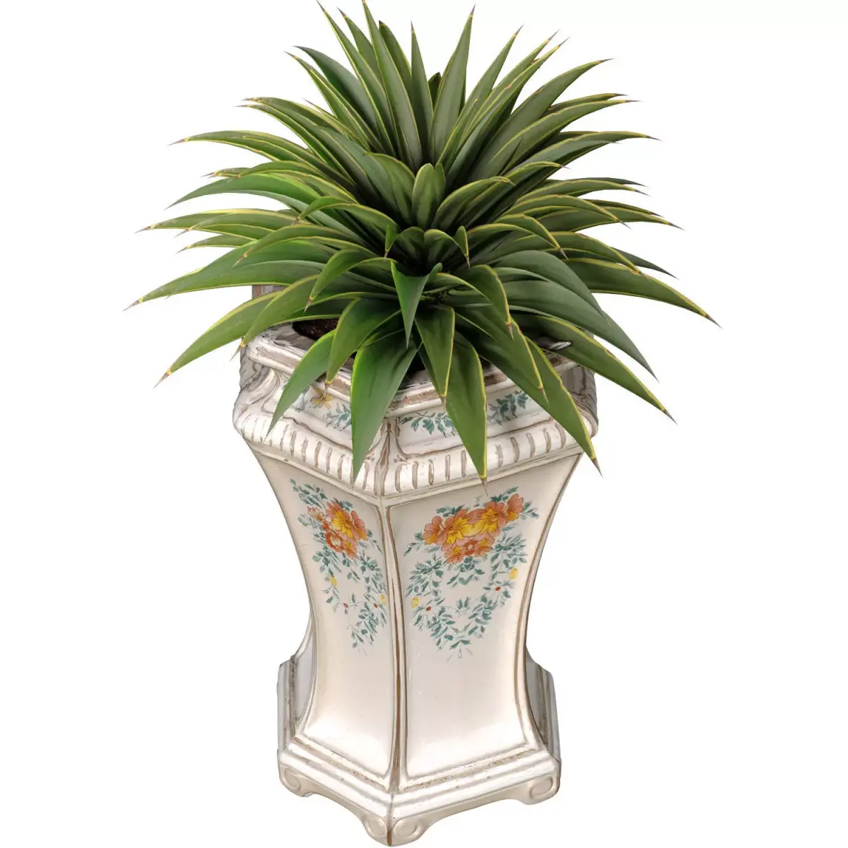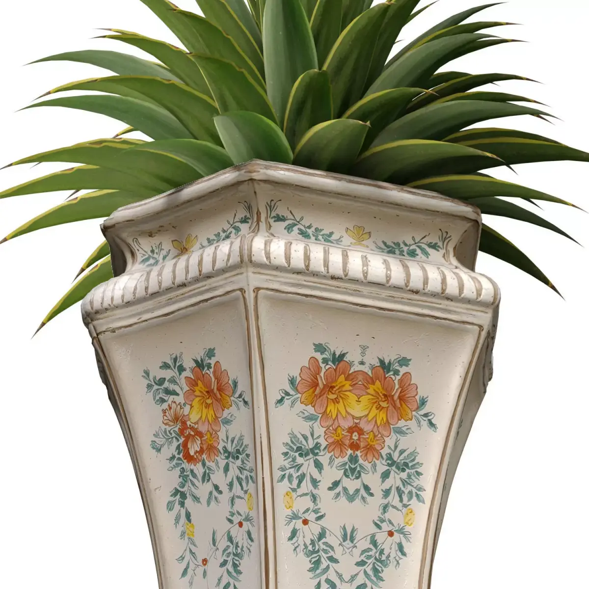 Decorative Agave plant in a classic tall vase, pot, flowerpot with a pattern.Indoor plant,