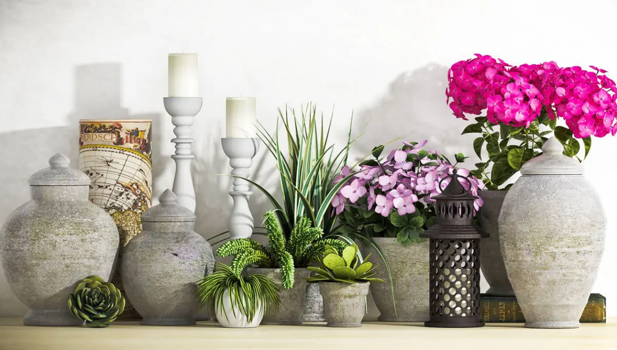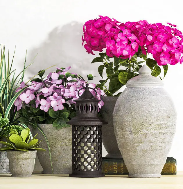 decorative flower vase set 14 lots of decorative set which total impact to enrich the beauty of interiors and feel it more natural, designed in 3dsmax