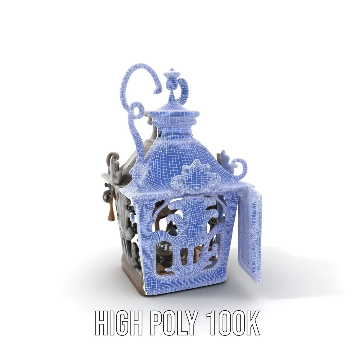 This Decorative Vintage Lantern Model Pack features intricate details and an antique design, perfect for enriching your 3D scene with traditional charm. Each model has 3 levels of detail: low-poly (1000 triangles for mobile), middle-poly (10,000 triangles for environment), and high-poly (100,000 triangles), which allows for the use of this model in production rendering (such as 3ds max, Maya, Cinema4D, Blender, Vray/Corona/Cycles and all others), game engines (Unity and Unreal compatible), and interactive presentations, providing a choice of detail based on the LOD System principle. This lantern is ideal for use in historical scenes, fantasy game environments, or virtual tours of antique collections. The model's textures are PBR, Diffuse, NormalMap, and reflection/roughness/metallic, which are suitable for any modern rendering engine. All models are accurately unwrapped and have no overlapping UV. All textures are 4096*4096 in size. The first image is the reference used for creating the 3D model. It is important to carefully evaluate the quality of the model by examining the preview images that display the topology and polygonal mesh. These previews (WIRE and WEB 3D Preview) clearly demonstrate how accurately the model matches the original reference and how well the geometry has been executed. If you liked this model, please give it a like and leave a comment!