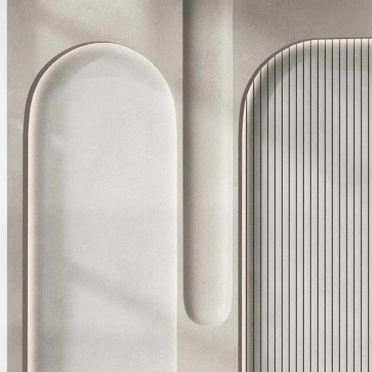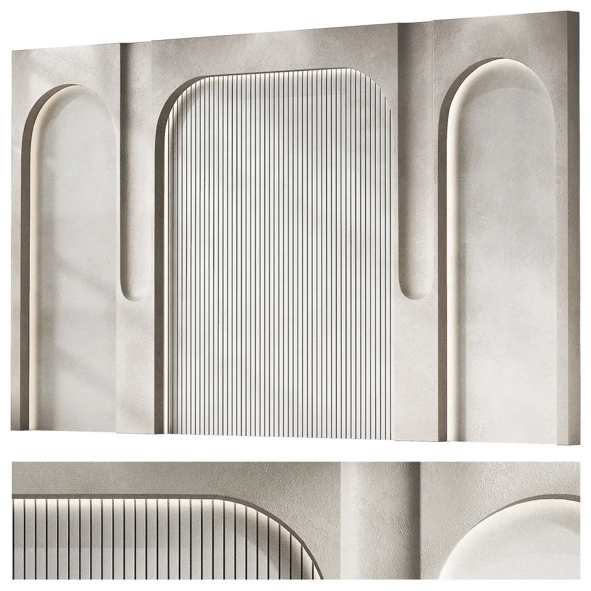 The 3D model contains designer wall panels.Relief wall niche of an arched semicircular shape with soft lighting from the inside.It is easy to change the color directly through the color of the material.Suitable for styles: modern, minimalism, japandiSuitable for interiors and display cases.