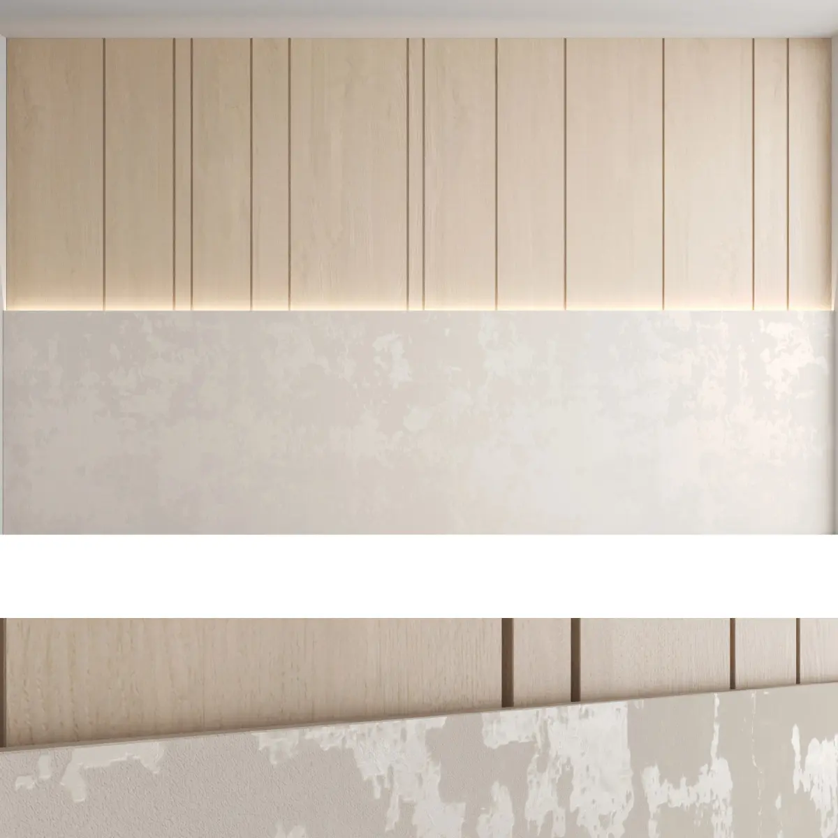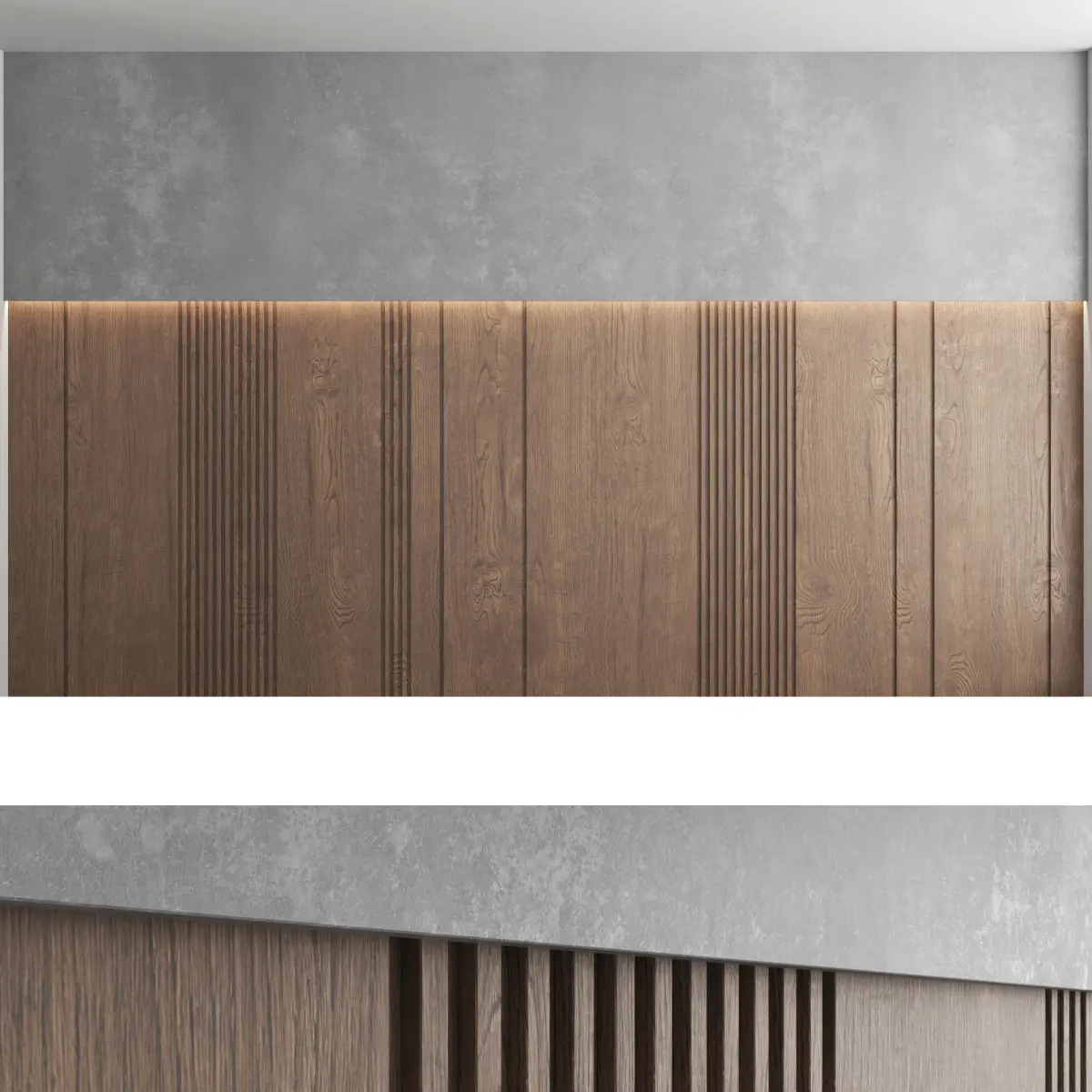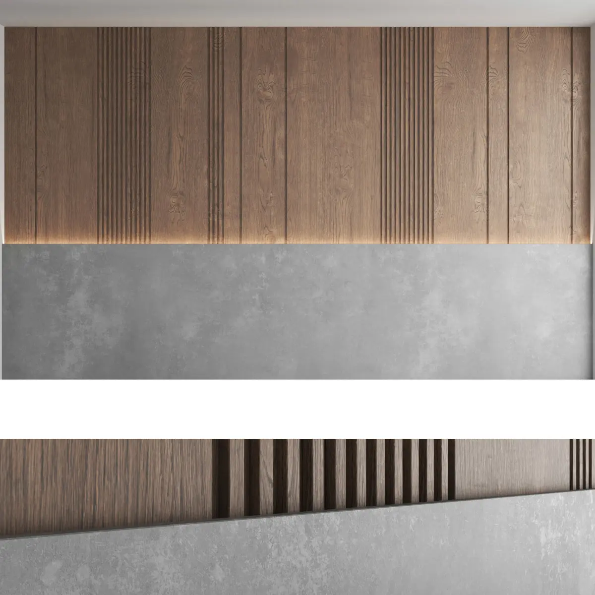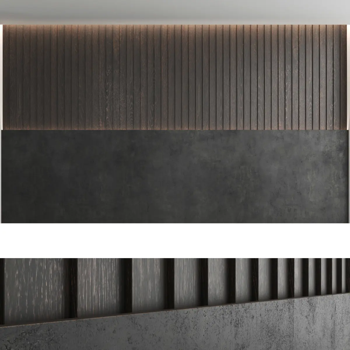 Headboard and wall panel3 types of configuration3 decorative concrete materials (seamless high-quality textures, resolution 8000x8000 pixels)3 wood materials (high resolution seamless oak textures, 8000x6000 pixels)Blades size: W.5000mm x H.3000mm