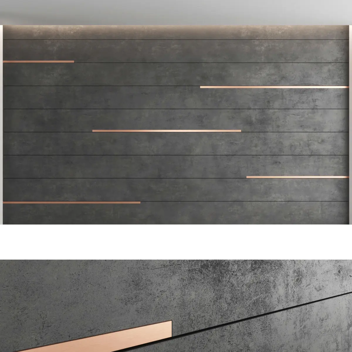 Headboard and wall panel4 types of configuration4 materials of decorative concrete (seamless high-quality textures, resolution 8000x8000 pixels)3 metalBlades size: W.5000mm x H.3000mm