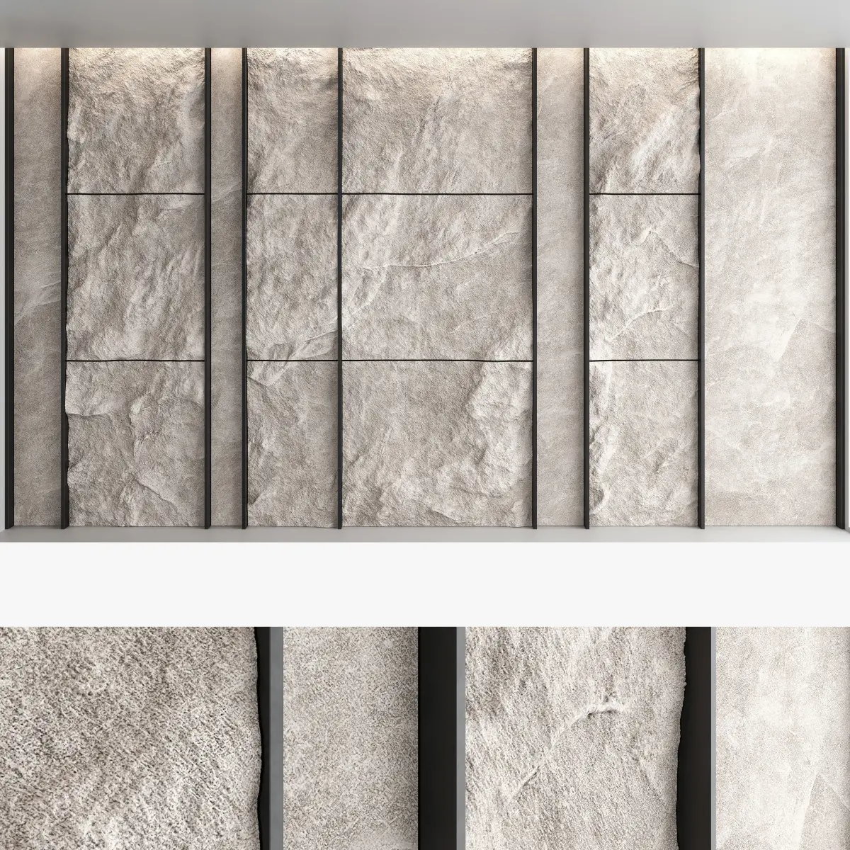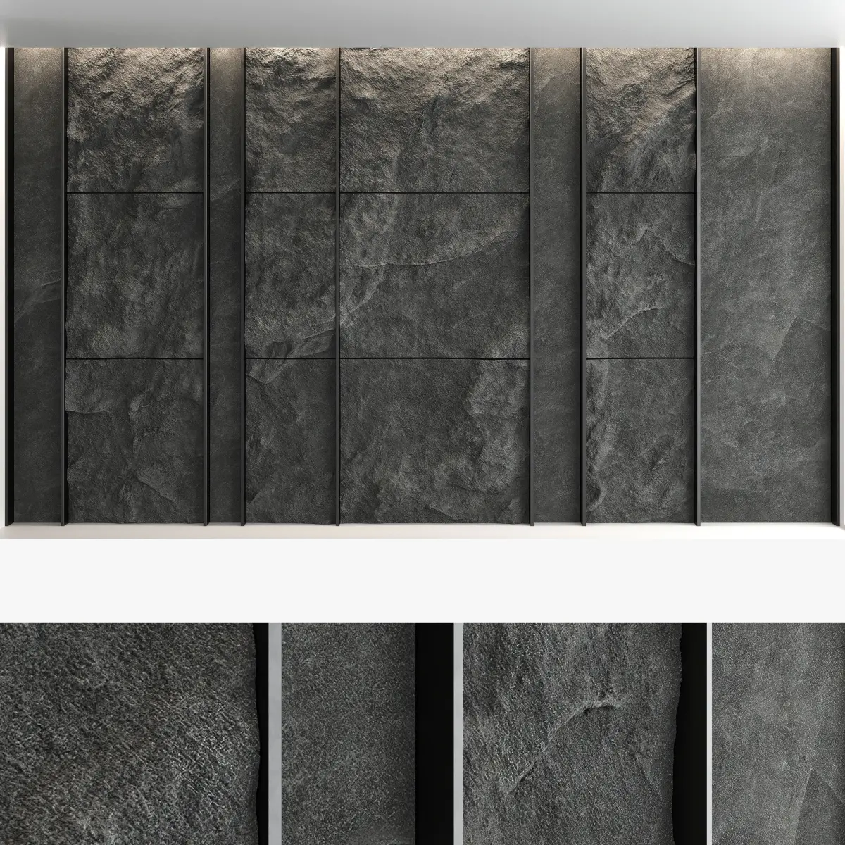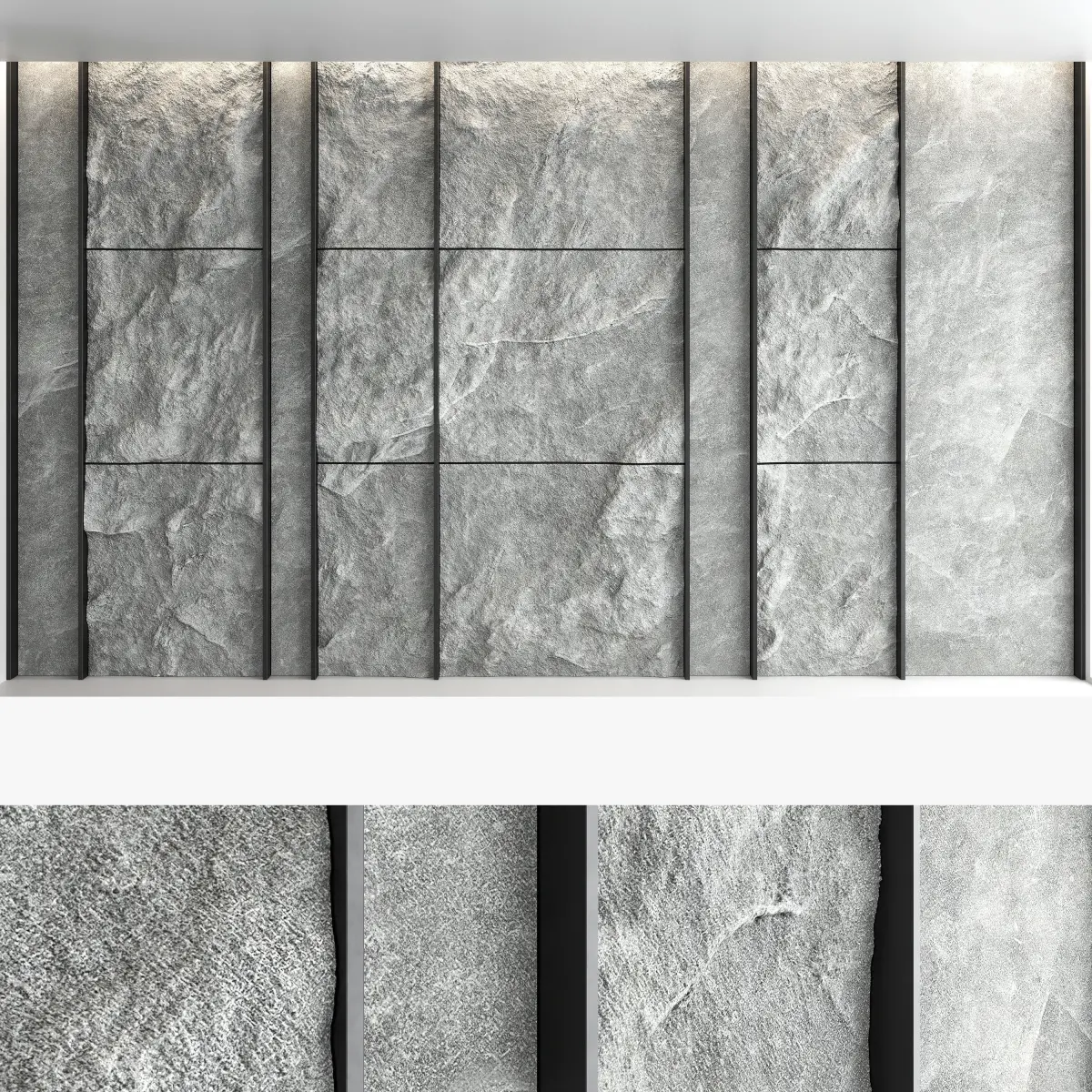 Headboard and wall panel4 panels (volume of a stone wall made with texture)4 stone wall materials, 1 metal material Blades size: W.5000mm x H.3000mm