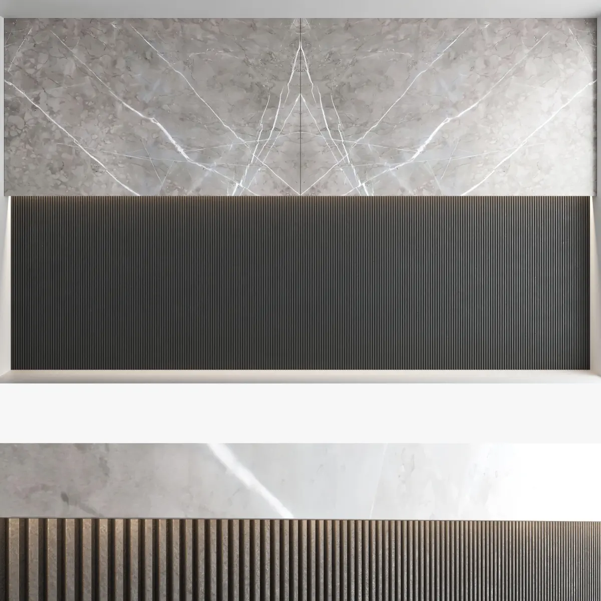 Headboard and wall panel4 types of configuration4 marble materials, 1 plaster materialBlades size: W.5000mm x H.3000mm