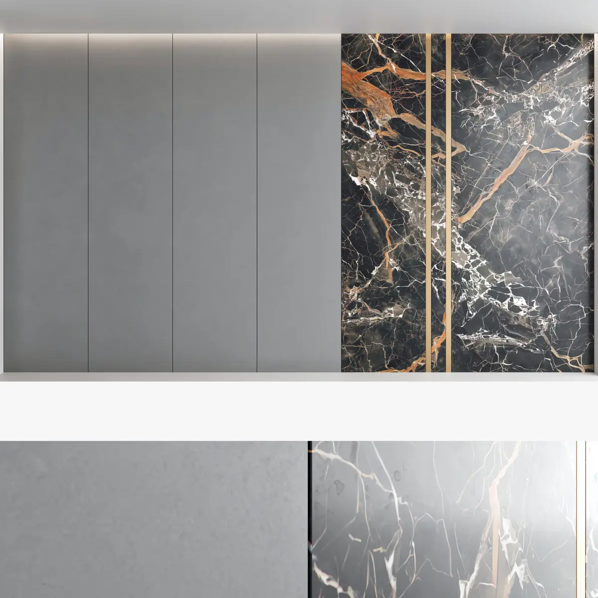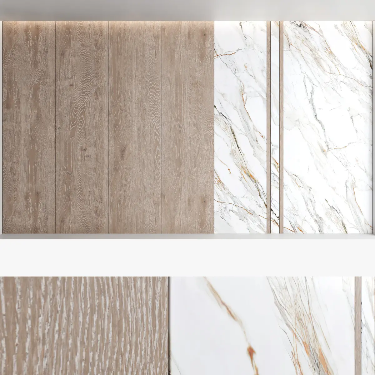 Headboard and wall panel4 types of configuration2 wood materials, 4 marble materials, 2 plaster materialsBlades size: W.5000mm x H.3000mm