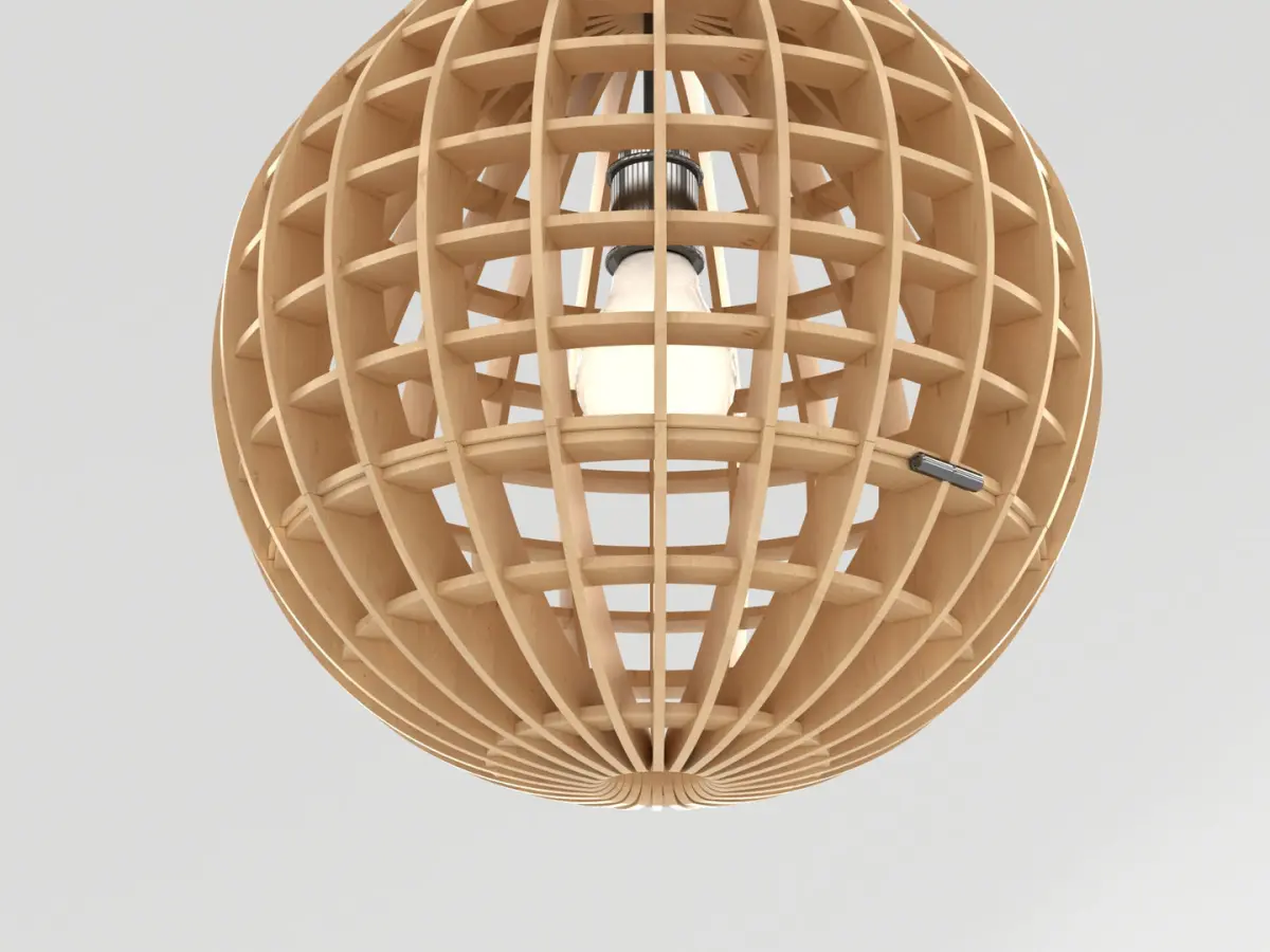 A DETAILED 3D MODEL OF A DECORATIVE WOODEN CEILING LAMP: