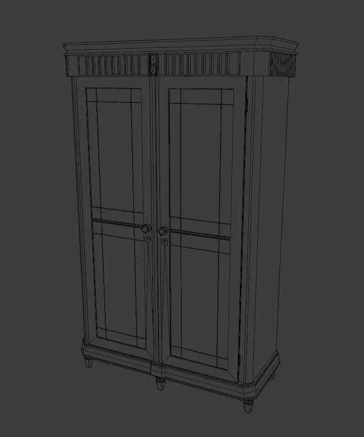 This model is ideal for interior setting, with other old furniture or even outdoor, I tried it with different hdri's and color schemes and it works well because of the high detailed wood material that reflects light in interesting and realistic ways, model is good for looking from close distance, wooden material has lots of details interesting to look at from different angles because of normal and roughness maps.Model is low poly. It's rigged, there is armature for both left and right door that is locked to z axis for easy use.