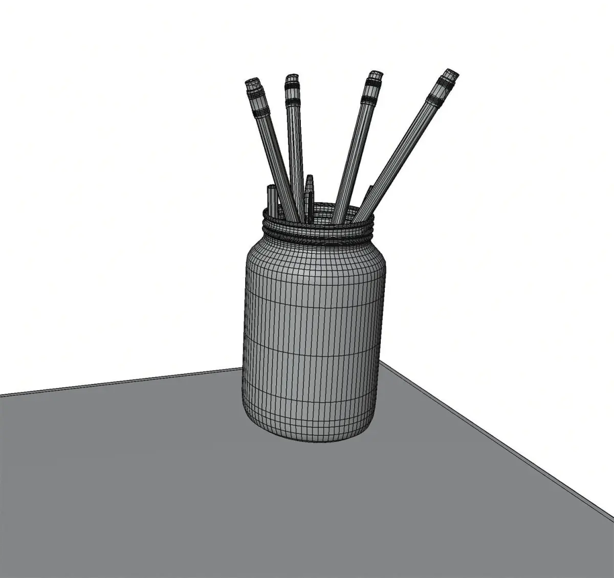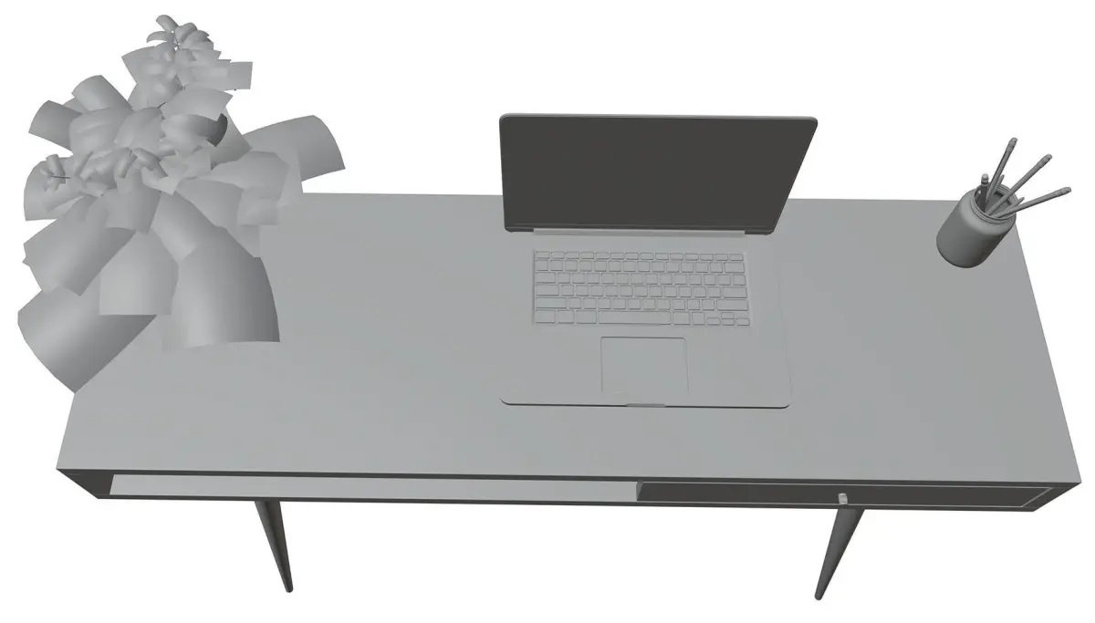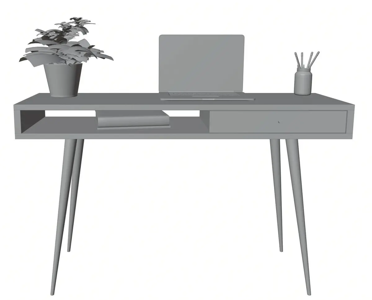 This high quality model includes wooden desk console with computer and plant. Desk on thin tall legs with a small drawer. Model prepared for 3d architectural visualisations and other graphic works.