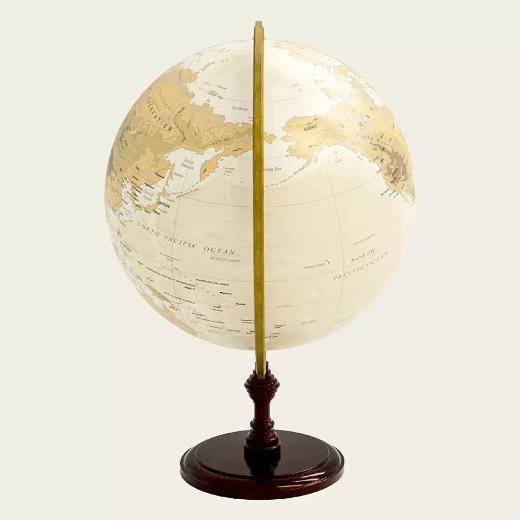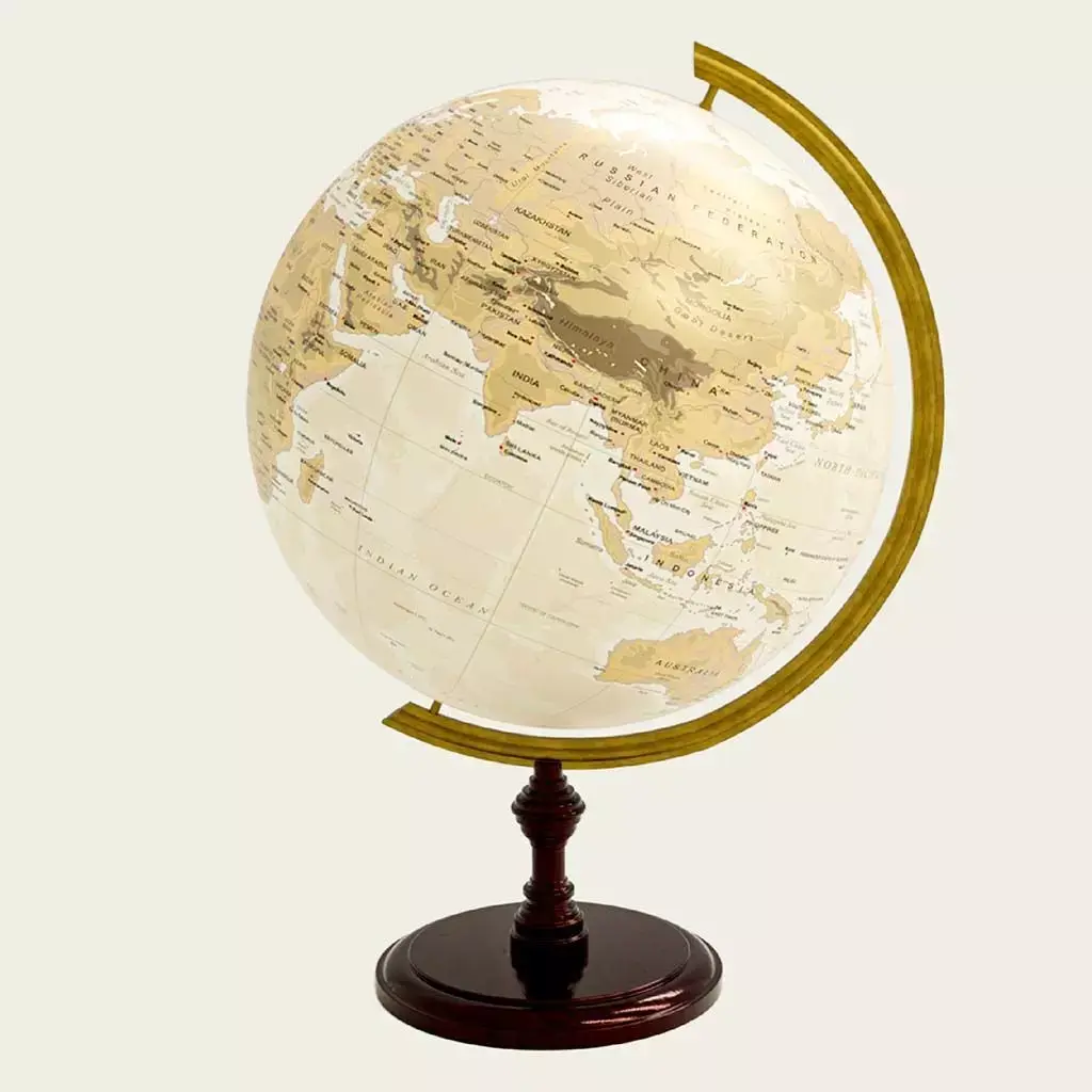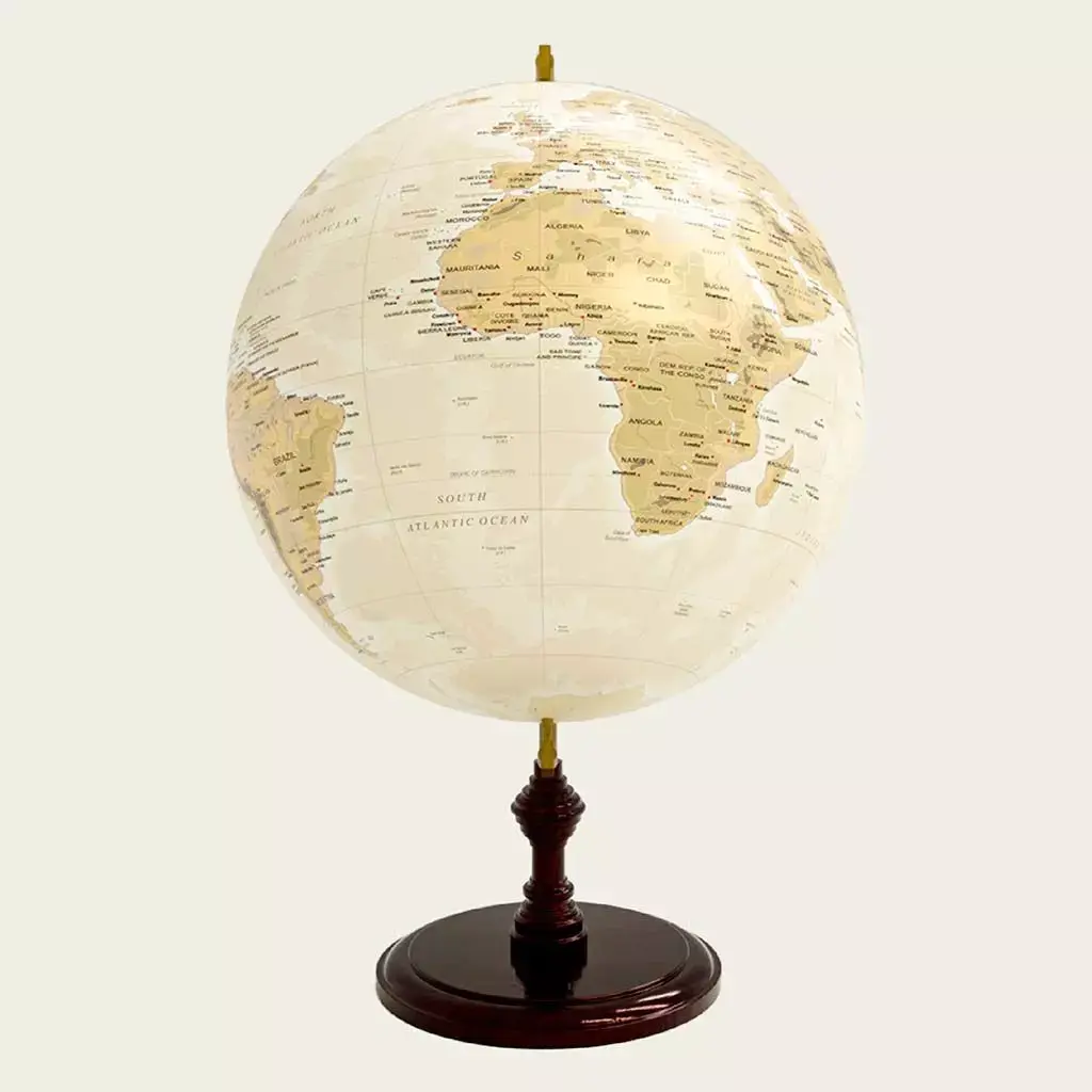 High-quality 3D model of a decorative world globe with a classic wooden base and metallic meridian.Perfect for interior renderings, educational scenes, and office or study visualizations.The model features clean topology, realistic materials, and accurate geography details.Features: