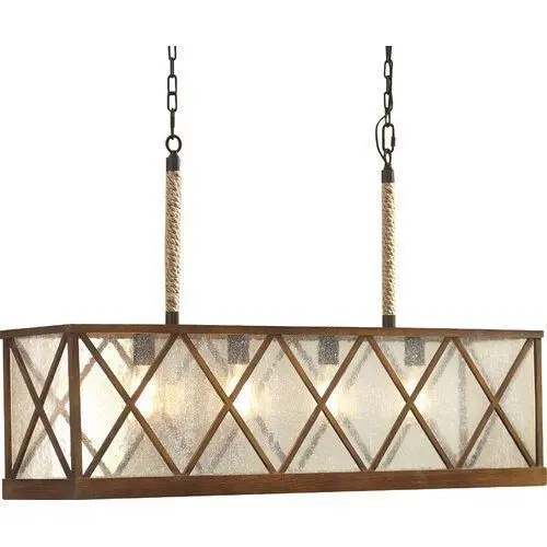 - Lodge styling with a modern flair is on display thanks to an array of stunning natural materials, from dark weathered oak and oil-rubbed bronze to steel chains and rope accents. A unique rectangular shape and four-light design make this piece a beautiful addition to any room.