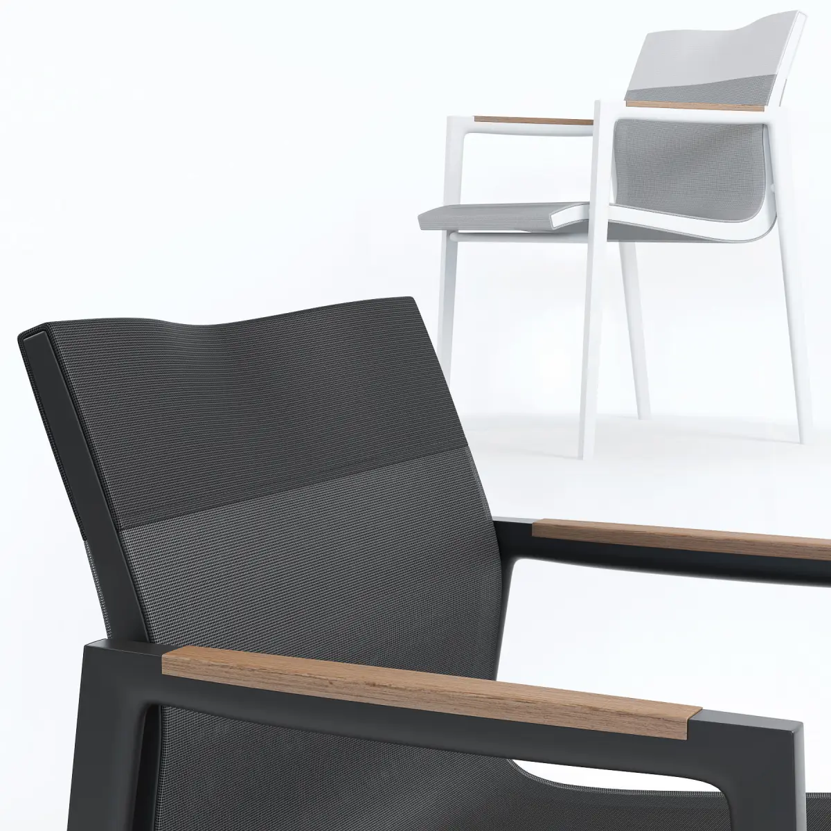 Pearl Gray & White or Anthracite & Black colors with Teak armrest inlays.