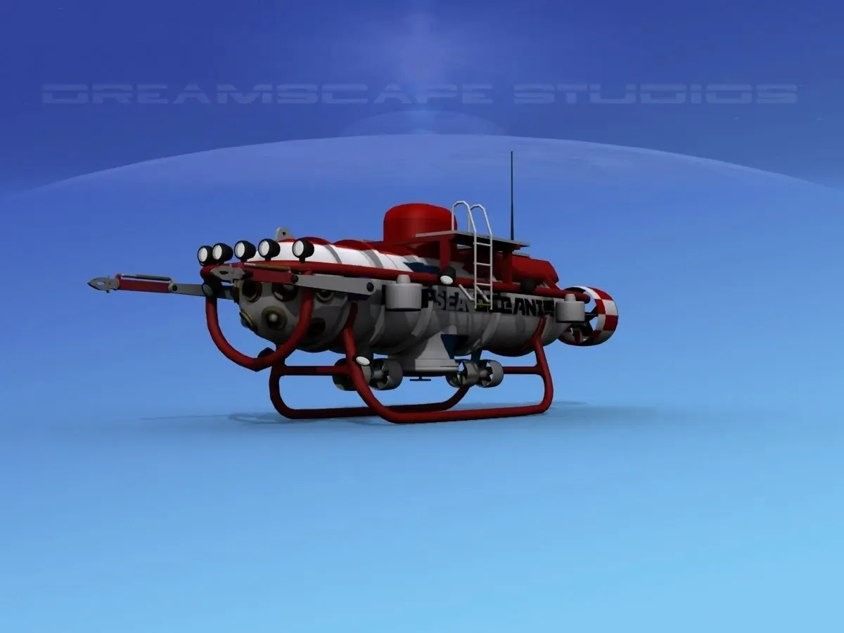 This medium polygon model is a model of a deep submergence exploration submarine capable of carrying up to 5 people. It has a lot of exterior detail including thrusters, main thruster, lights, articulated arms, small window ports and crash bars. The subs cradle is also included. All thrusters are animateable. Materials are all provided as shown here. This model is provided in several formats for your immediate downloading.
