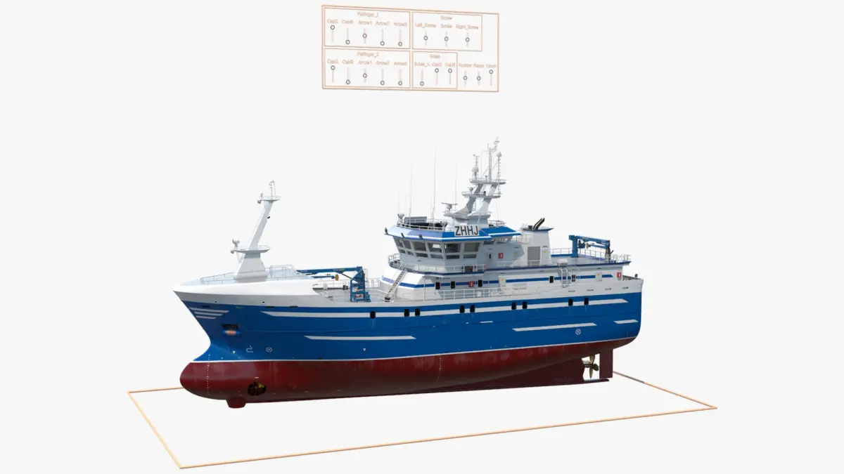 Deep Sea Longline Trawler Blue Rigged is a 3d model of a modern fishing and research ship, designed for various maritime activities including fishing, exploration, and scientific research.