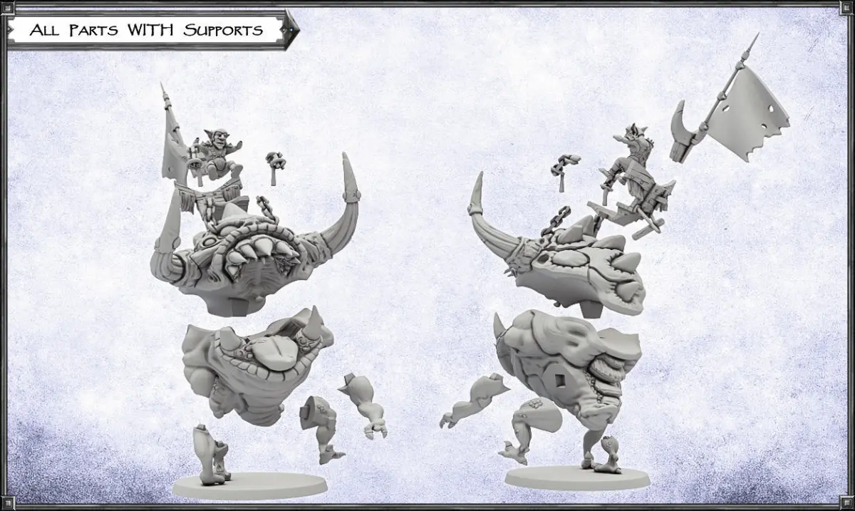 The deepcave wrecking team is made up of a beast from the cavernous depths of the Orc territories and, by a goblin rider, they are usually goblins who have taken care of these creatures since they were little and, with a little help from the famous moldy mushrooms, Its control is not difficult.