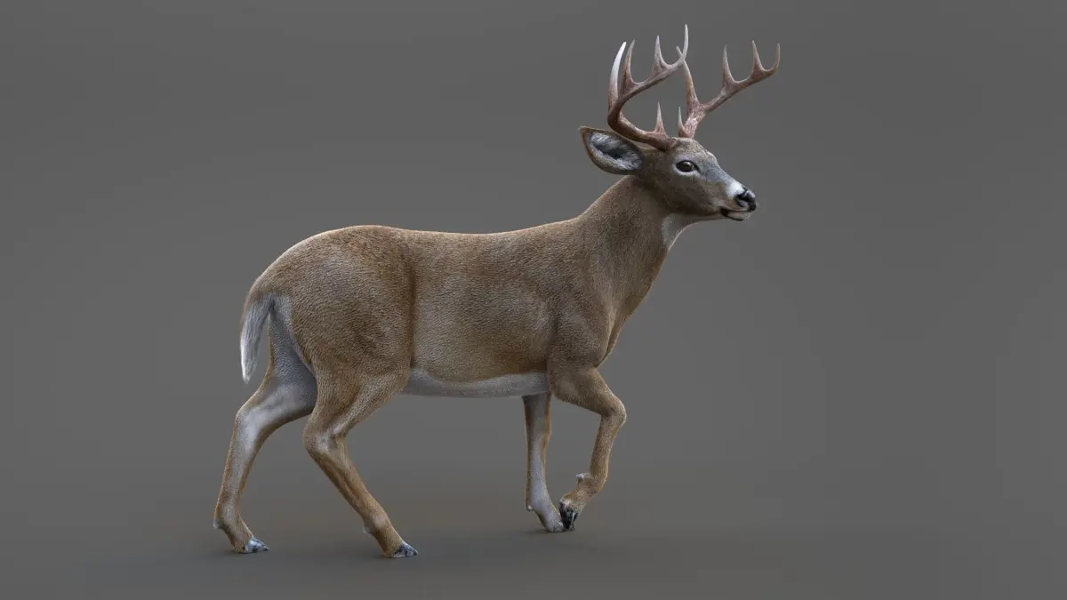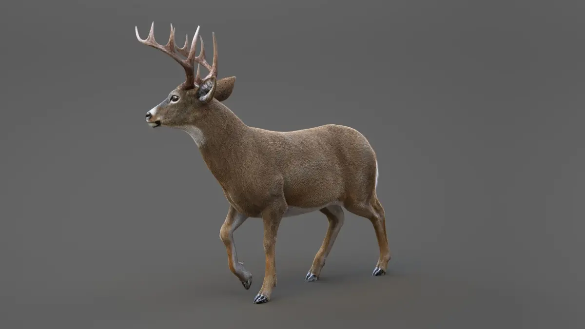High Detailed Photorealistic Deer; FULLY RIGGED and ANIMATED, UVunwrapped and smoothable, made with Maya and X-Gen Core for fur.