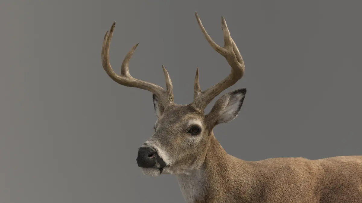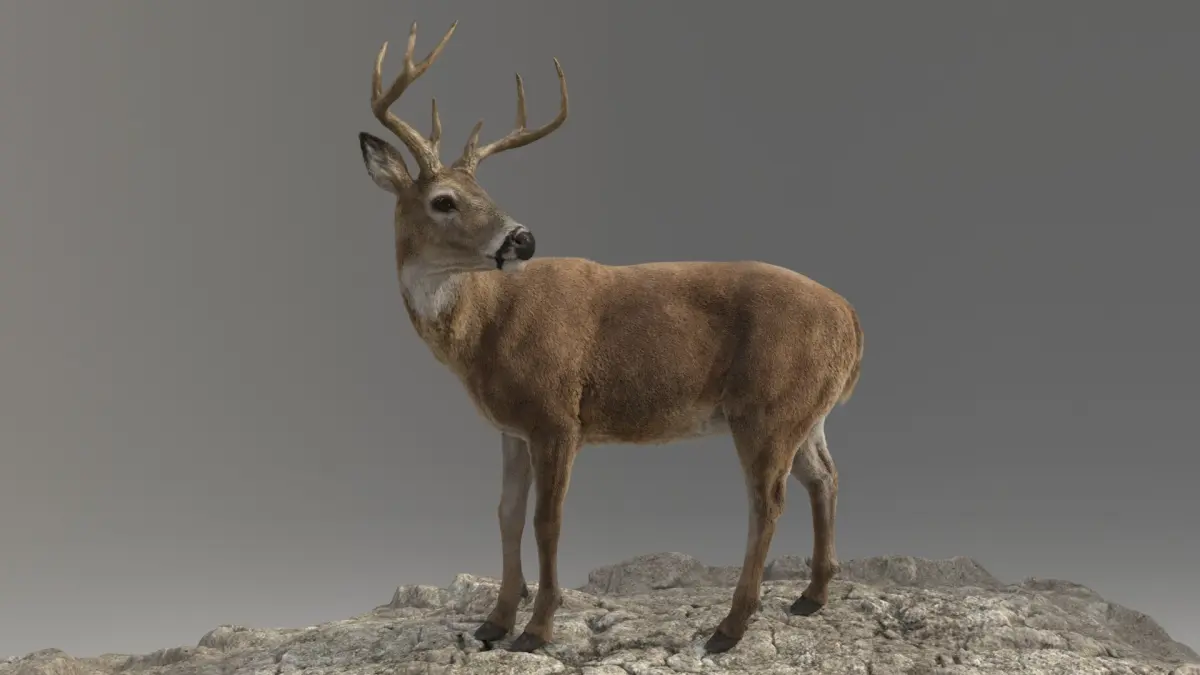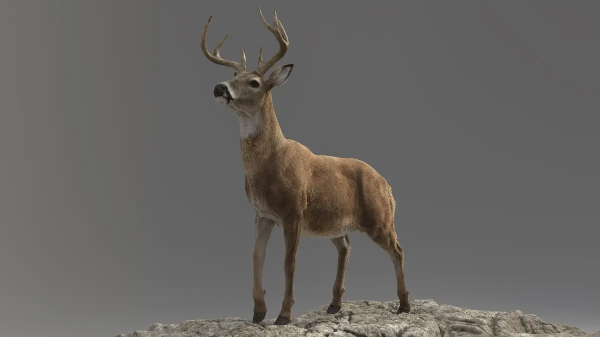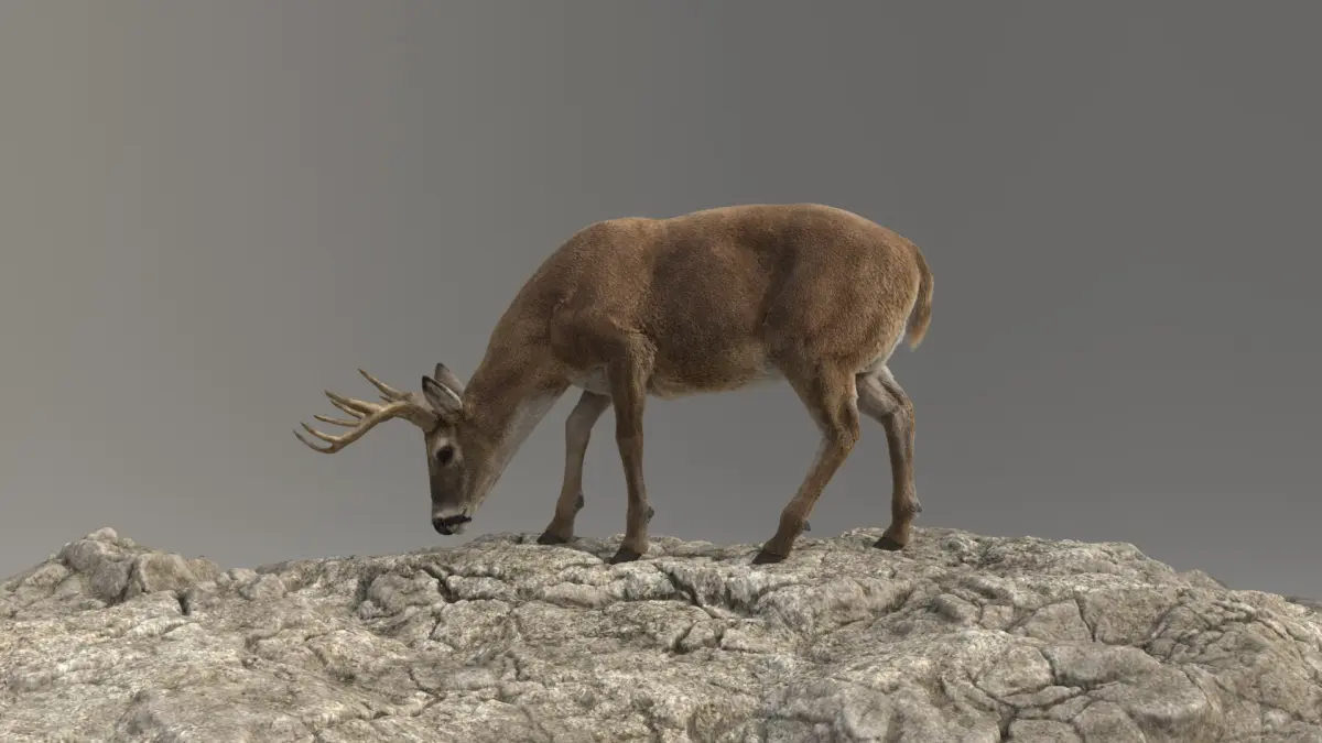 High-quality realistic Deer model with fur, it has Arnold materials with high-resolution textures. The Deer model has clean topology and looks good in one iteration of smoothing. The model has a custom rig and already animated. The Deer model has 8 different realistic animations such as eating, walking, running, etc.