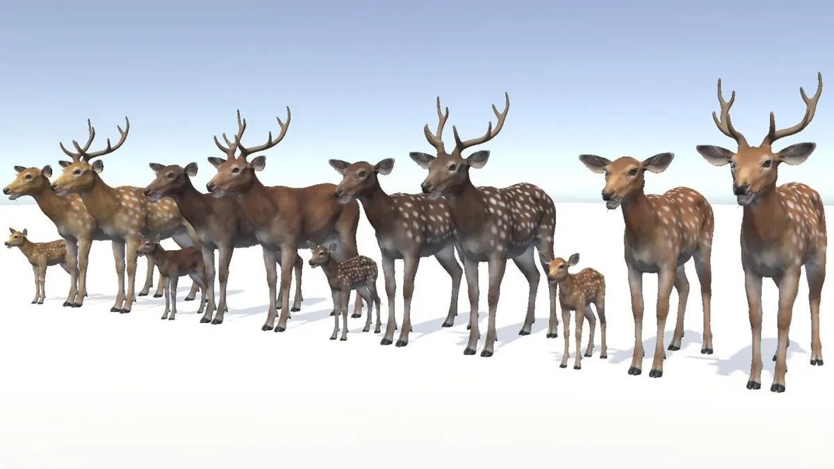 Attack (up, front, move front, back, left, right, run), hit (front, back, middle), death (left, right), idle 1-6, eat, eat dig, drink, lie 1-2, sleep, 15 stages jump (start, start forward, start place, fly up, fly up forward, fly horizontal, fly down high, fly down high forward, fly down low, fly down low forward, land, land forward, land place, fall edge, hooked and climbed), jump (forward, run, place), walk (front, left, right, back, back left, back right ), trot (front, left, right), run (front, left, right ), swim (enter, front, left, right, back, back left, back right ), turn (left, right), turn 180 (left, right ).
