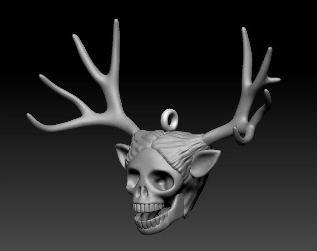 Deer Human Skull Pendant available as a 3D model in STL and OBJ format for 3D Printing.