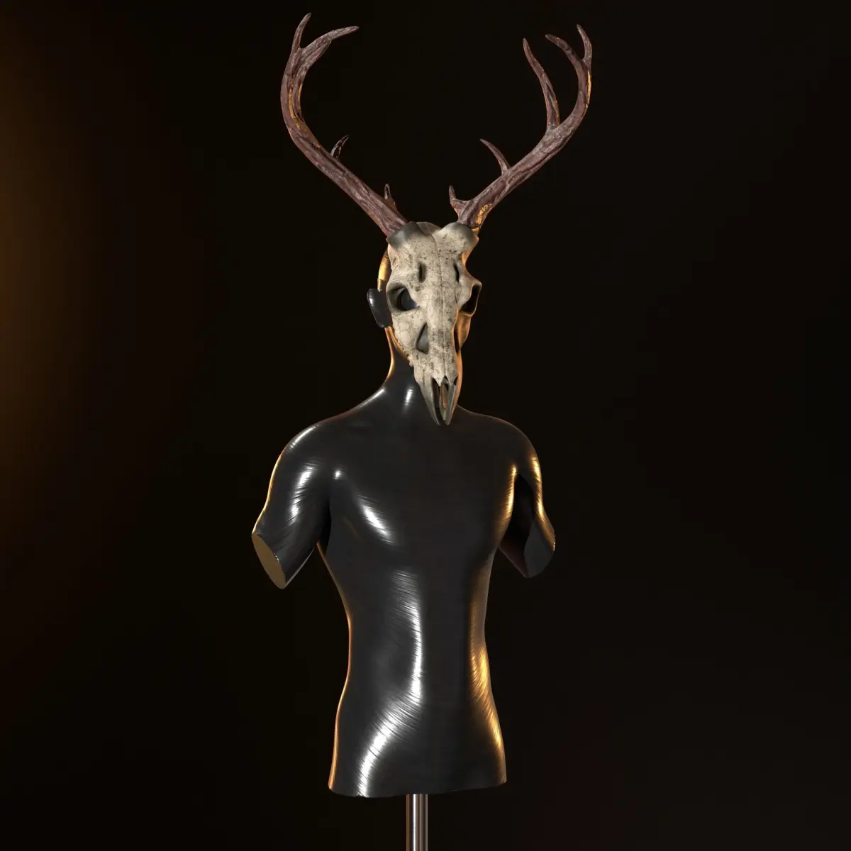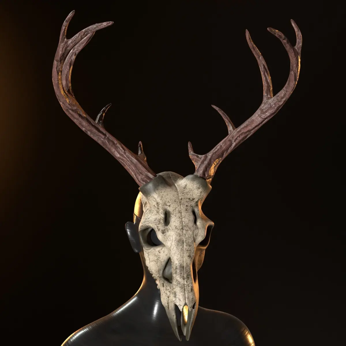 Deer skull mask game Prop.Sculpting done in Zbrush,Retopoly in maya,Texturing in Substance painter,Render in Marmoset Toolbag.