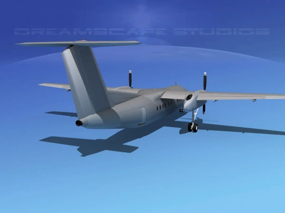 DHC-8-100 is built very near to scale of actual general dimensions. It is fully textured and fairly detailed and built to be a good animation subject. Animateable features including landing gear, landing gear doors, flaps, ailerons, elevators and rudder. This model is available in 11different formats.