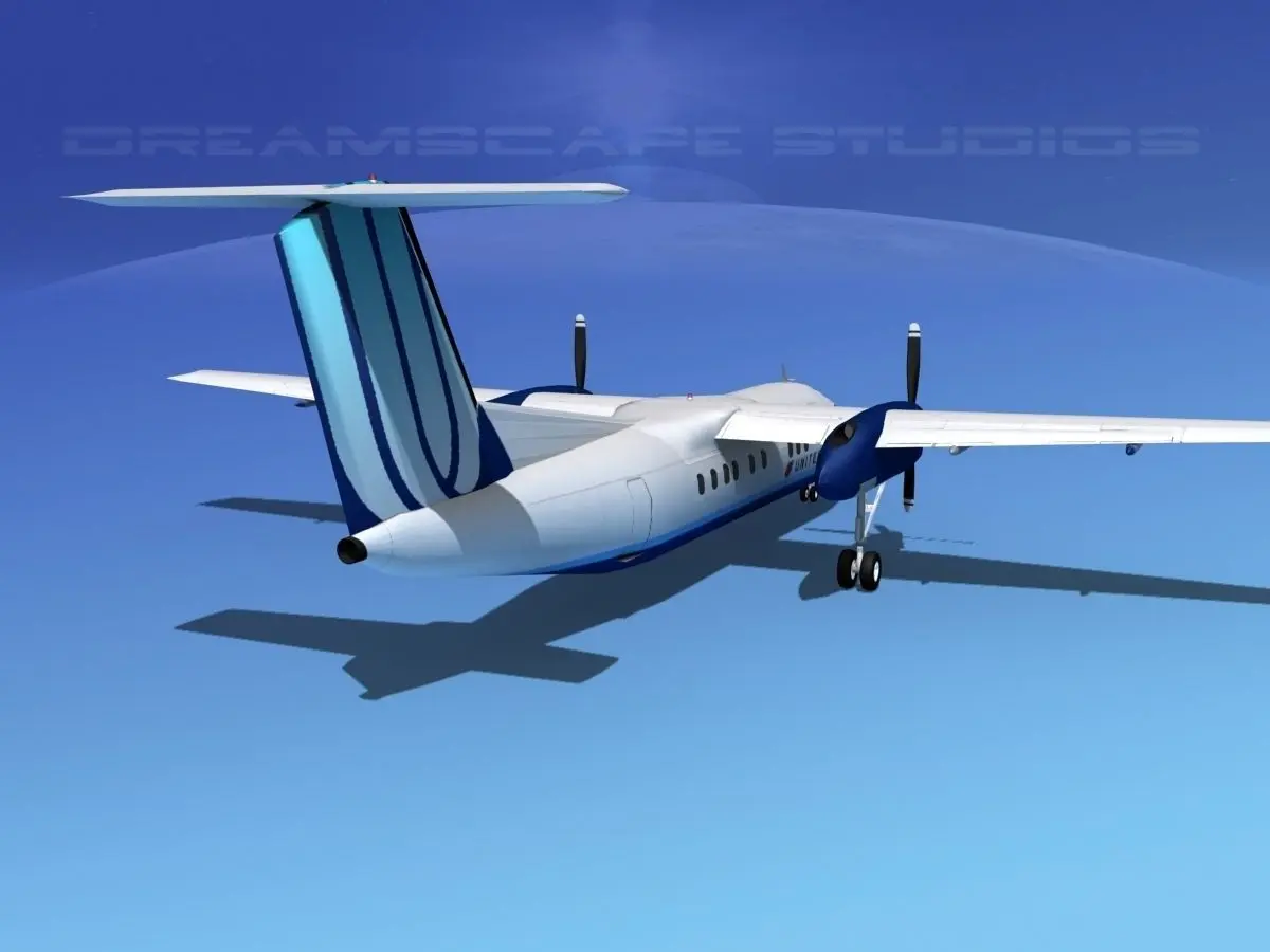DHC-8-100 is built very near to scale of actual general dimensions. It is fully textured and fairly detailed and built to be a good animation subject. Animateable features including landing gear, landing gear doors, flaps, ailerons, elevators and rudder. This model is available in 11different formats.