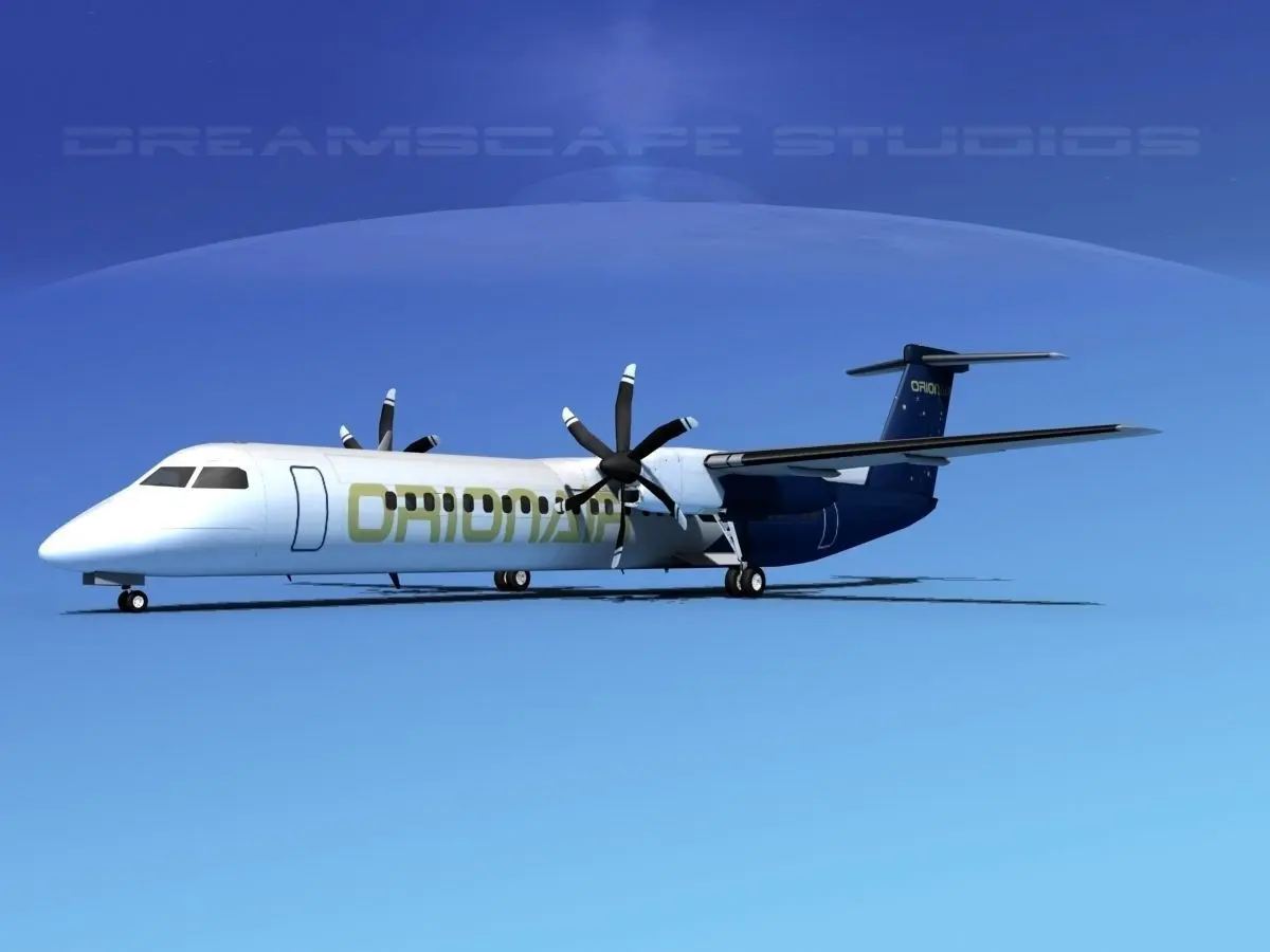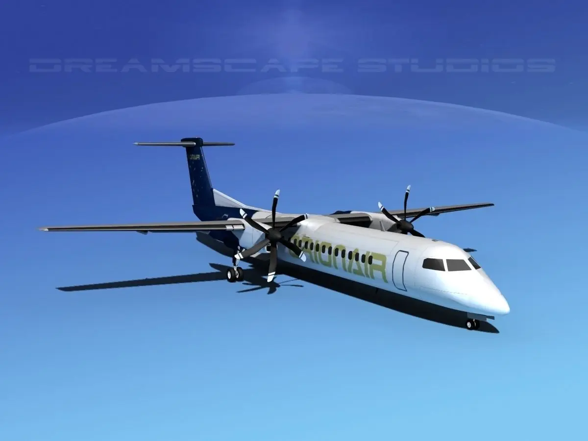 DHC-8-400 is built near to scale within a few inches of actual general dimensions and fully textured. It has many animateable features including propellers, ailerons, flaps, rudder and elevators. Landing gear can be retracted and landing gear doors closed. It is provided in several formats.