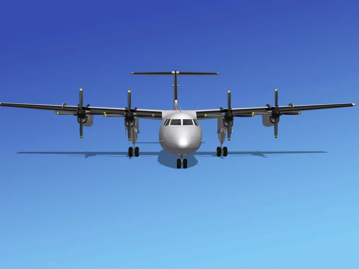 DHC-7-200 is built very near to scale, within a few inches of actual general dimensions. It includes many animateable features. The propellers, control surfaces, landing gear and landing gear doors are animateable or configurable. The model is fully textured and comes with several formats.