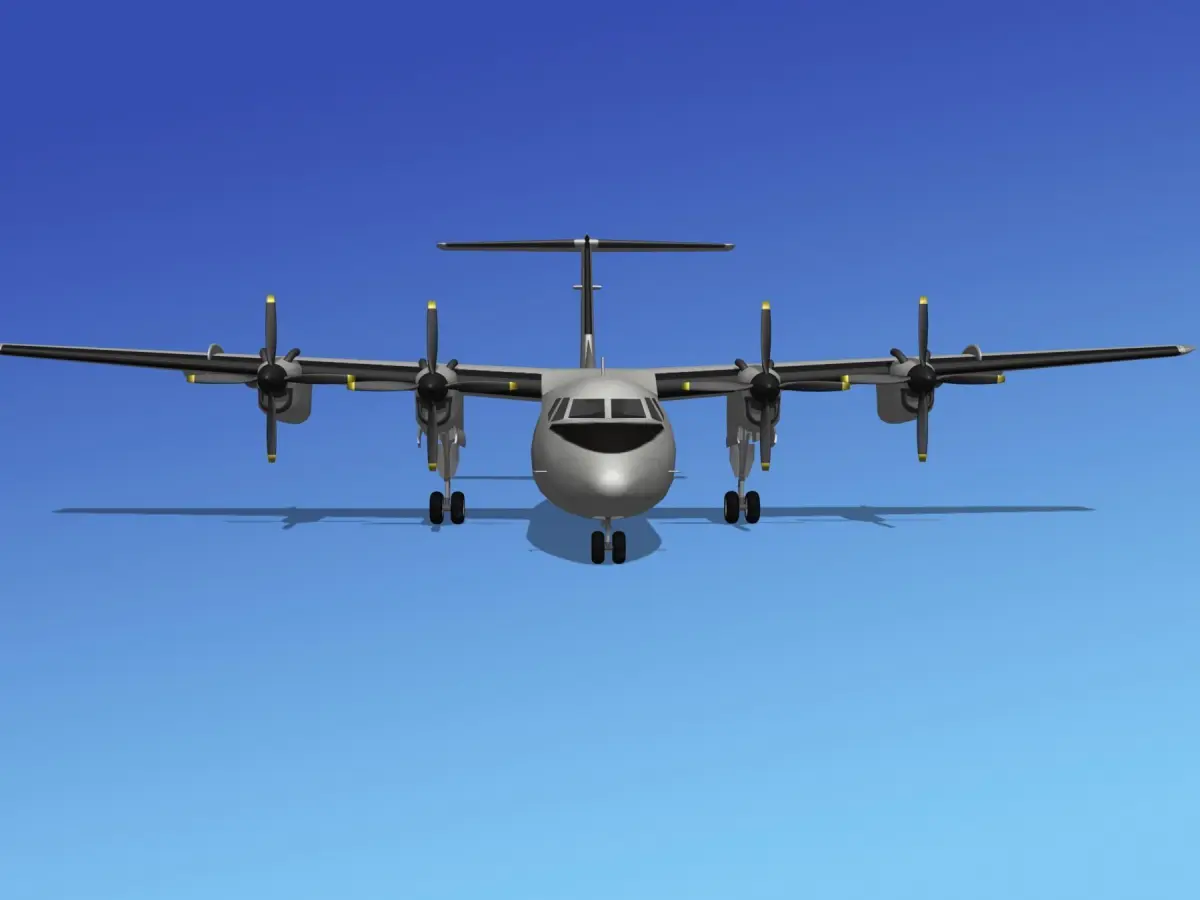 DHC-7-200 is built very near to scale, within a few inches of actual general dimensions. It includes many animateable features. The propellers, control surfaces, landing gear and landing gear doors are animateable or configurable. The model is fully textured and comes with several formats.