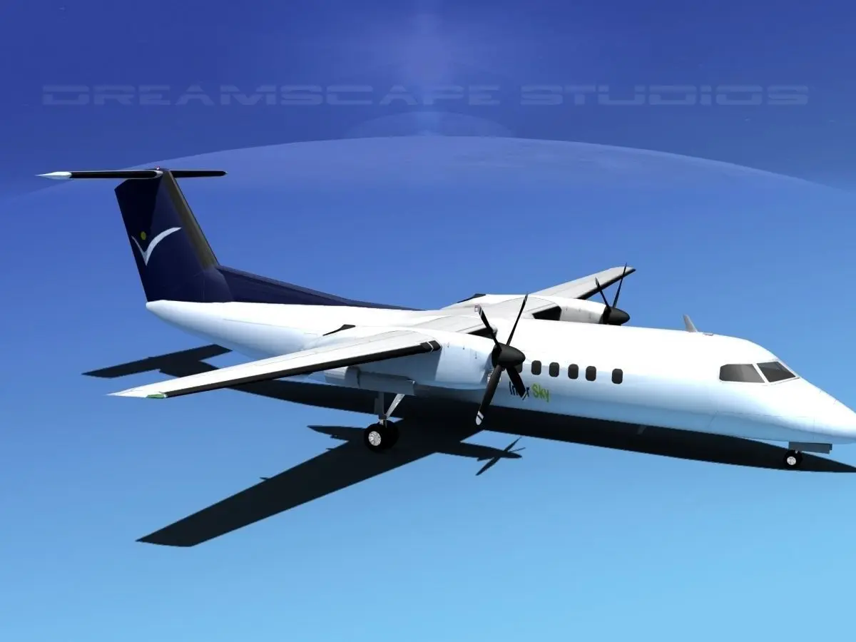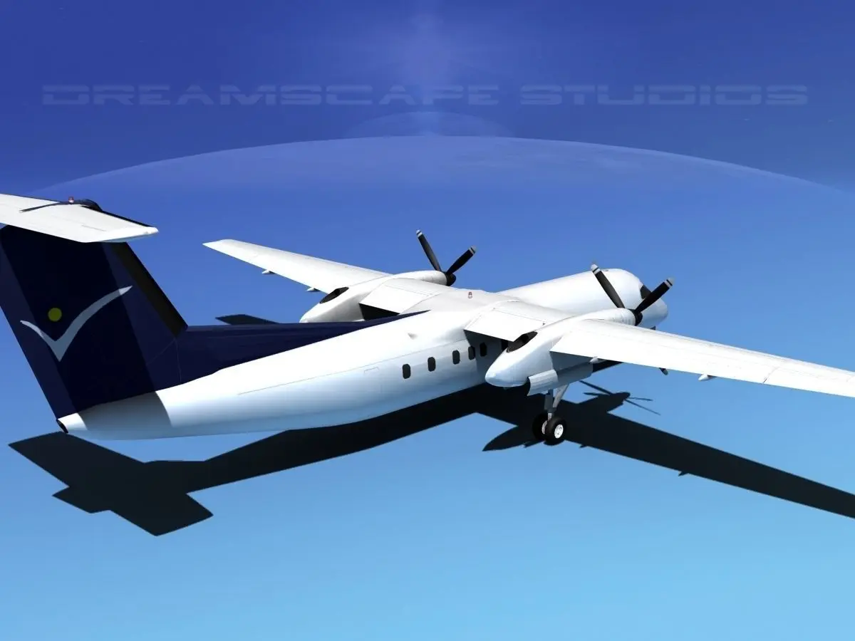 The DHC-8 300 is built very near to scale, within a few inches of actual general dimensions. It is fully textured and fairly detailed and built to be a good animation subject. Many liveries are available. A VBM version without paint and textures is also available. This model comes in a wide range of formats.