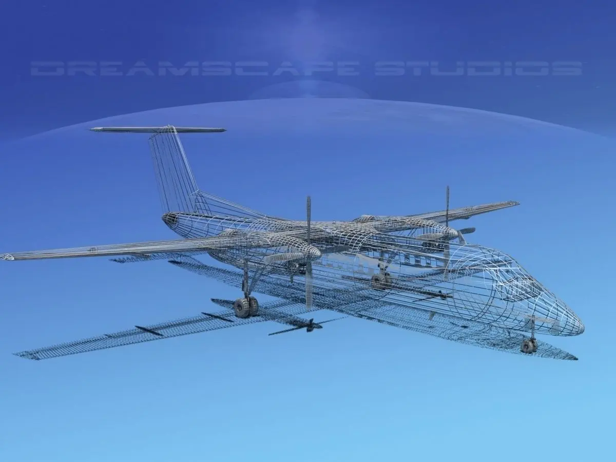 The DHC-8 300 is built very near to scale, within a few inches of actual general dimensions. It is fully textured and fairly detailed and built to be a good animation subject. Many liveries are available. A VBM version without paint and textures is also available. This model comes in a wide range of formats.