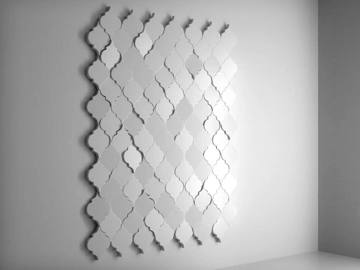 This is a realistic looking 3d model of a dekowall with trendy tiles.