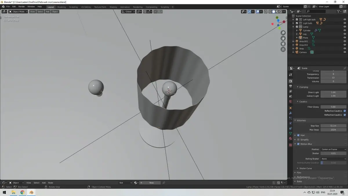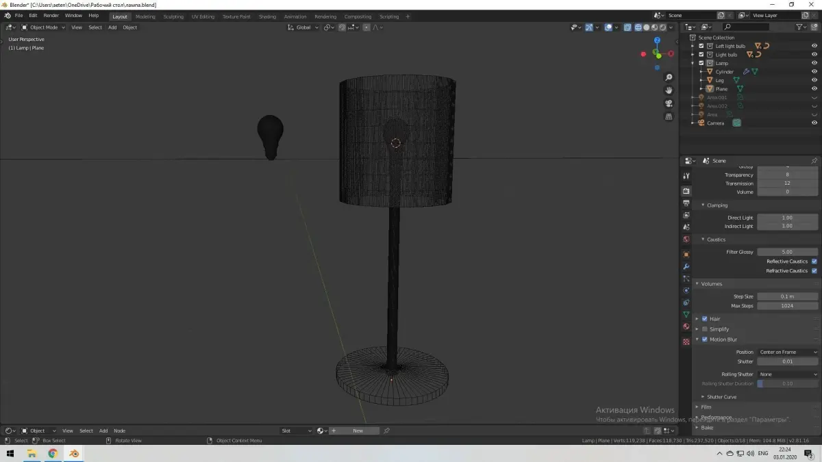 Ordinary table lamp. Simple materials. Textures were not used. There is no attachment to the lampshade. The rounding of the lamp housing is not spiral. Please note this! The shader Emission is assigned to the glow body. The number of polygons is indicated without a separated lamp.
