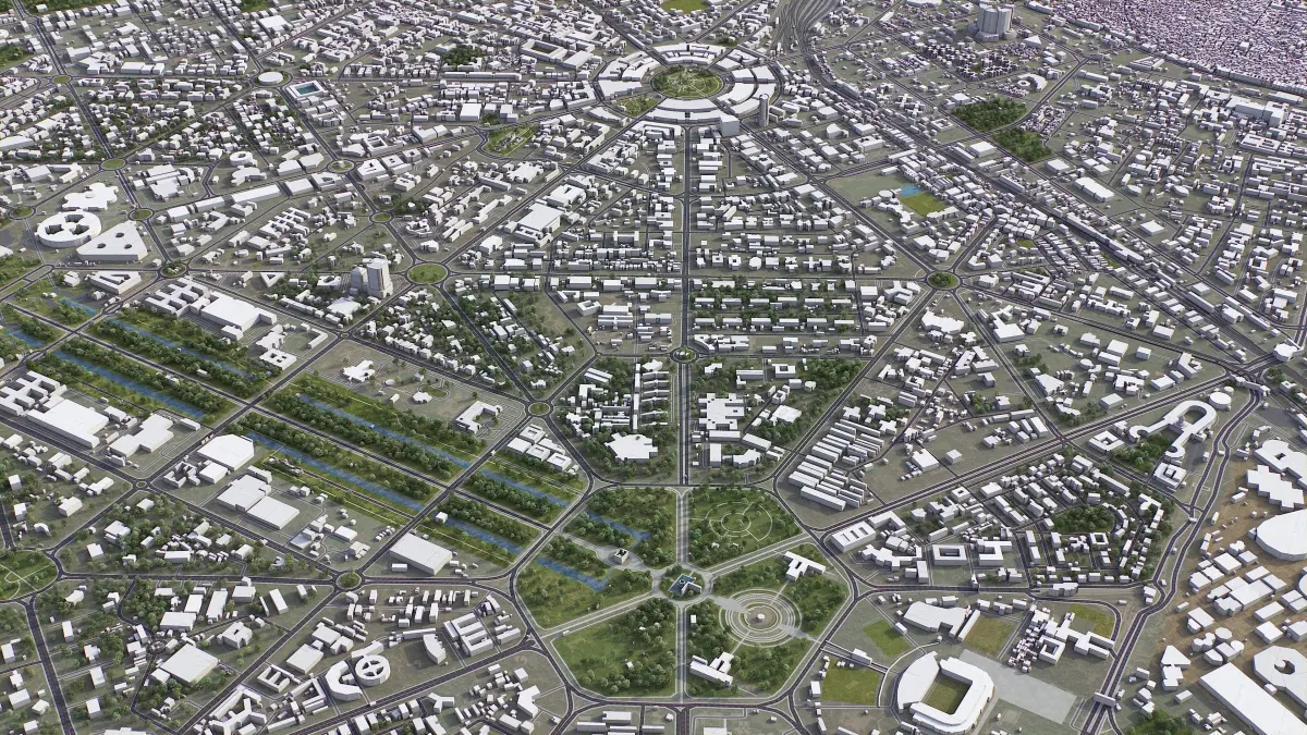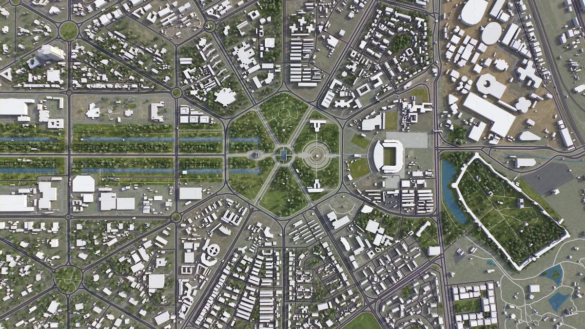 - Buildings and roads placed on the optimized terrain