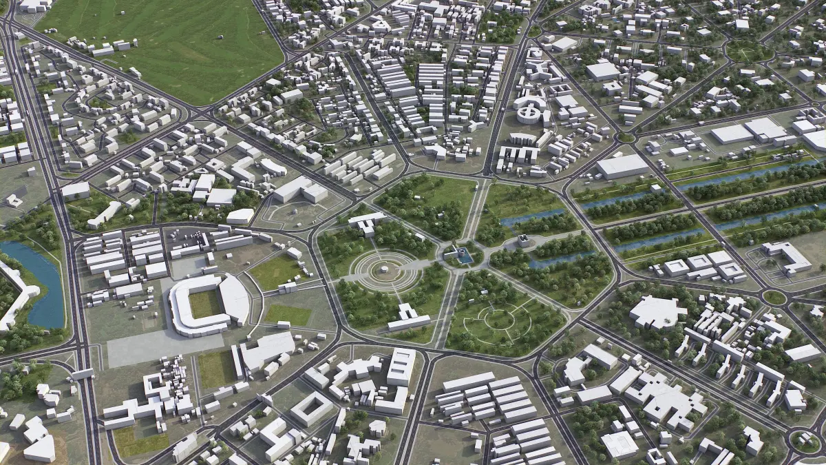 - Buildings are UVW mapped, split by material IDs, no textures assigned