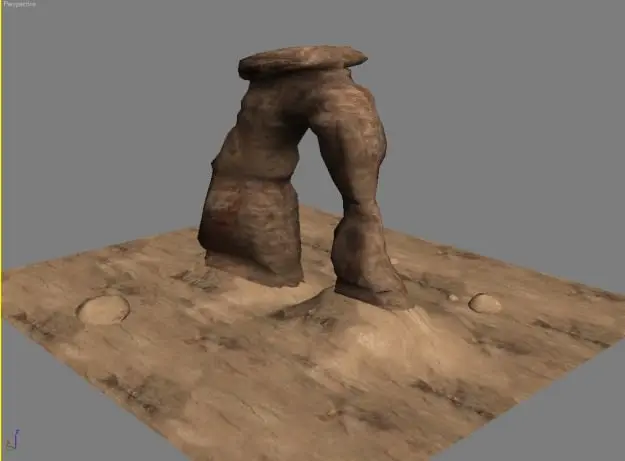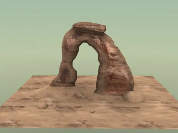 This is a 3d model of an arch shaped stone structure. It is modeled in medium resolution and uses 1 texture for the arch and 1 tiled texture for the small terrain segment under arch.