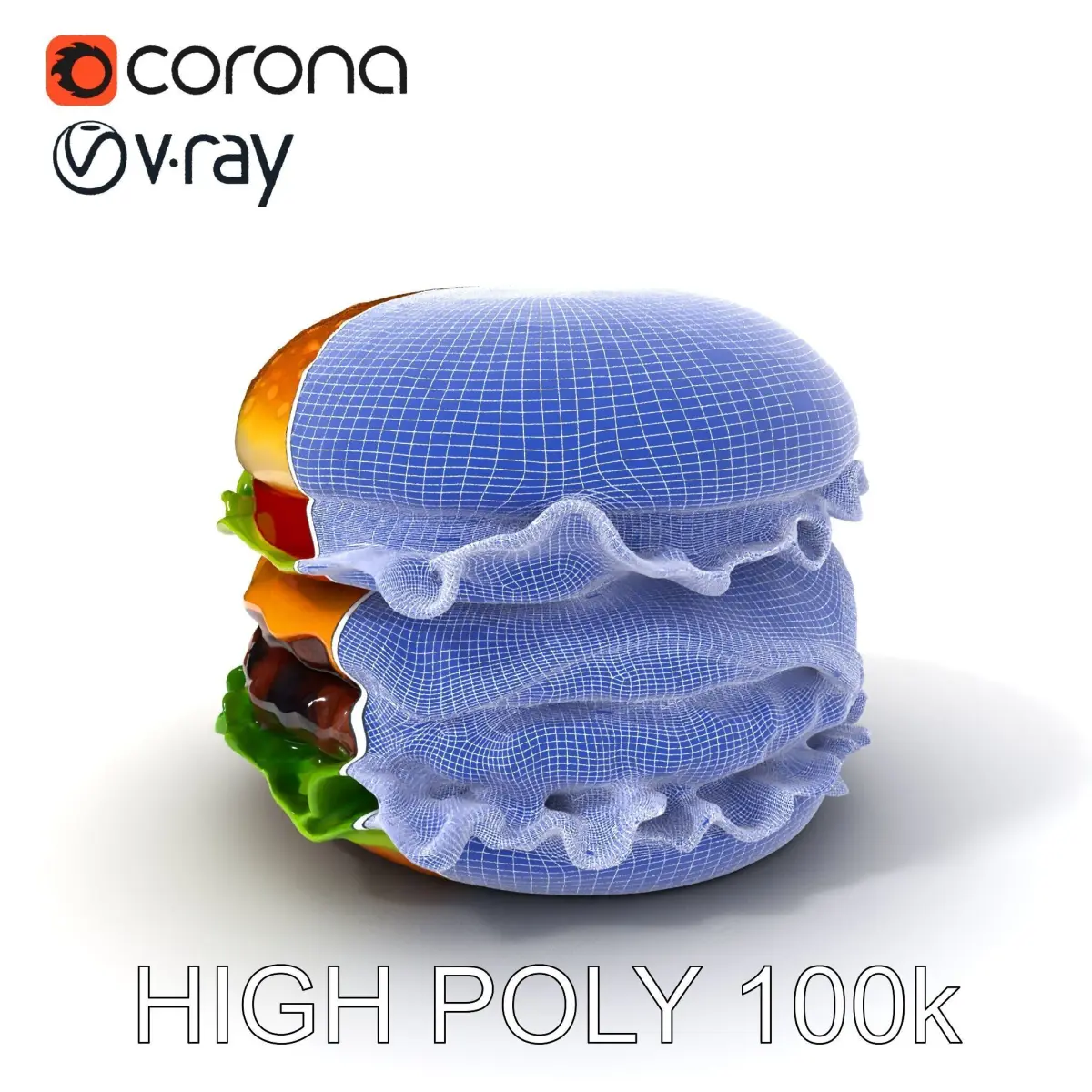 This 3D model pack offers a realistic representation of a classic cheeseburger, complete with a sesame seed bun, juicy patties, crisp lettuce, and melted cheese. Each model comes in three levels of detail to suit different needs: low-poly for mobile applications, middle-poly for environments, and high-poly for detailed production rendering. The model's textures include PBR, Diffuse, NormalMap, and reflection/roughness/metallic, ensuring compatibility with modern rendering engines. Accurately unwrapped with no overlapping UVs, each texture is 4096x4096 pixels in size, perfect for high-quality visual output.