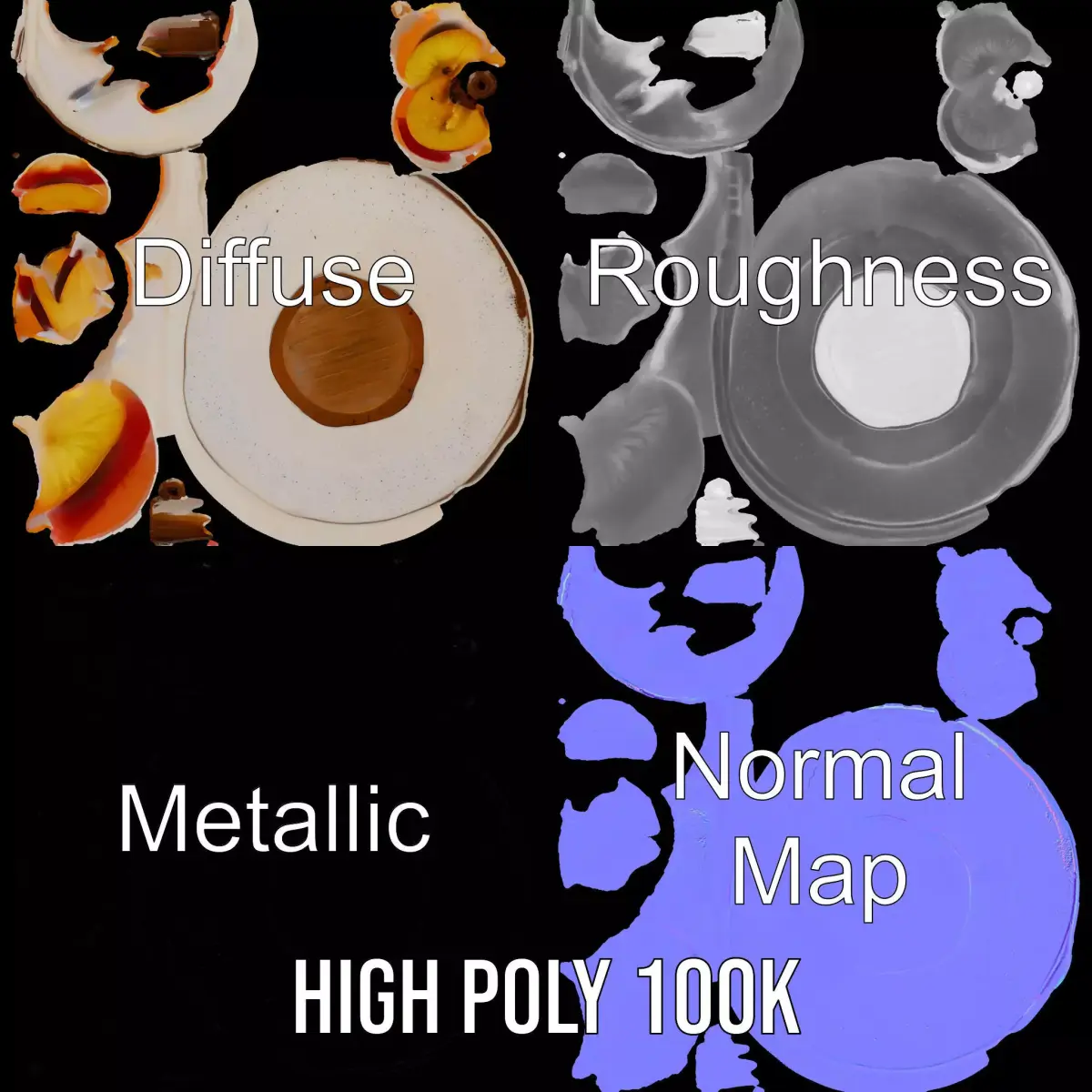 This 3D model features a beautifully crafted cake with a realistic texture and appetizing design. Ideal for bakery-themed visualizations or as a decorative element in virtual environments, it enhances the aesthetic appeal of any scene. Each model has 3 levels of detail: low-poly(1000 triangles for mobile), middle-poly(10 000 triangles for environment), and high-poly(100 000 triangles), which allows for the use of this model in production rendering(such as 3ds max, Maya, Cinema4d, Blender, Vray/Corona/Cycles and all other ), game engines(Unity and Unreal compatible), and interactive presentations, providing a choice of detail based on the LOD System principle. The model's textures are PBR, Diffuse, NormalMap, and reflection/roughness/metallic, which are suitable for any modern rendering engine. All models accurately unwrapped and have no overlapping UVs. Additionally, all textures are 4096*4096 in size. Please like and leave a comment for the model if you liked it.
