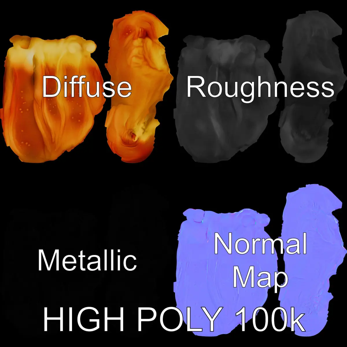 This 3D croissant model pack includes three levels of detail: low-poly for mobile (1000 triangles), middle-poly for environments (10,000 triangles), and high-poly for production rendering (100,000 triangles). It is suitable for use in game engines like Unity and Unreal, as well as for production rendering in 3ds Max, Maya, Blender, and others. The model's PBR textures include Diffuse, NormalMap, and roughness/metallic maps, all accurately unwrapped with no overlapping UVs. This model is perfect for culinary showcases, virtual kitchens, and animation. All textures are 4096x4096 for high-quality rendering. The first image is the reference used for creating the 3D model. It is important to carefully evaluate the quality of the model by examining the preview images that display the topology and polygonal mesh. These previews (WIRE and WEB 3D Preview) clearly demonstrate how accurately the model matches the original reference and how well the geometry has been executed. If you like the model, please leave a comment and a like!
