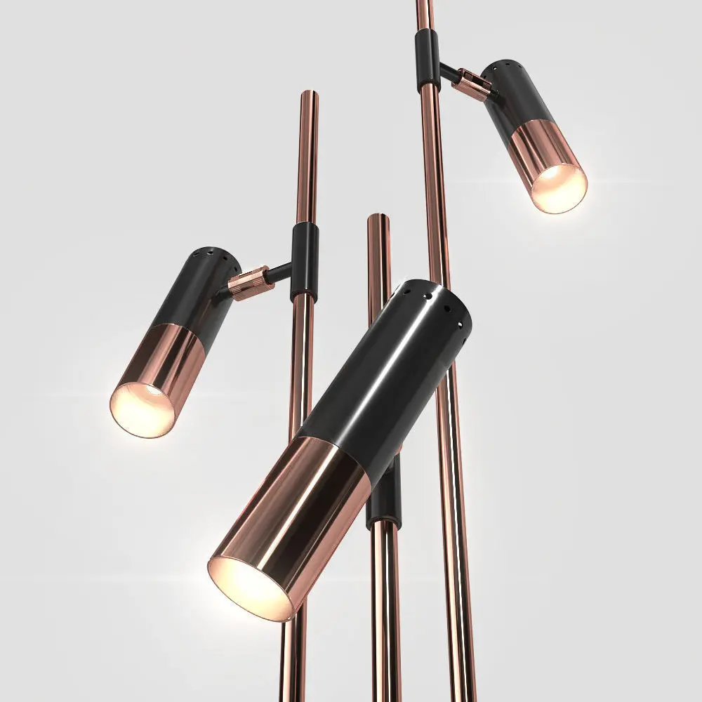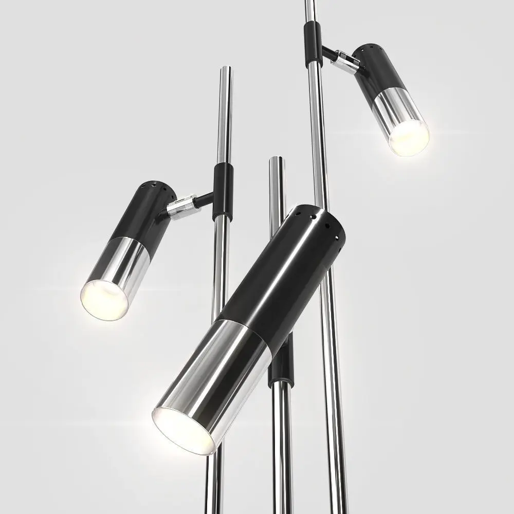 Contemporary floor light from IKE collection.Models available in black/gold, black/chrome, black/copper and white/gold, colors.Separate model with turn off lights is included.