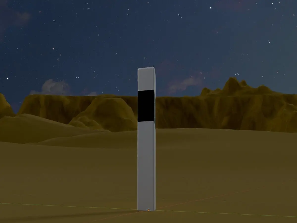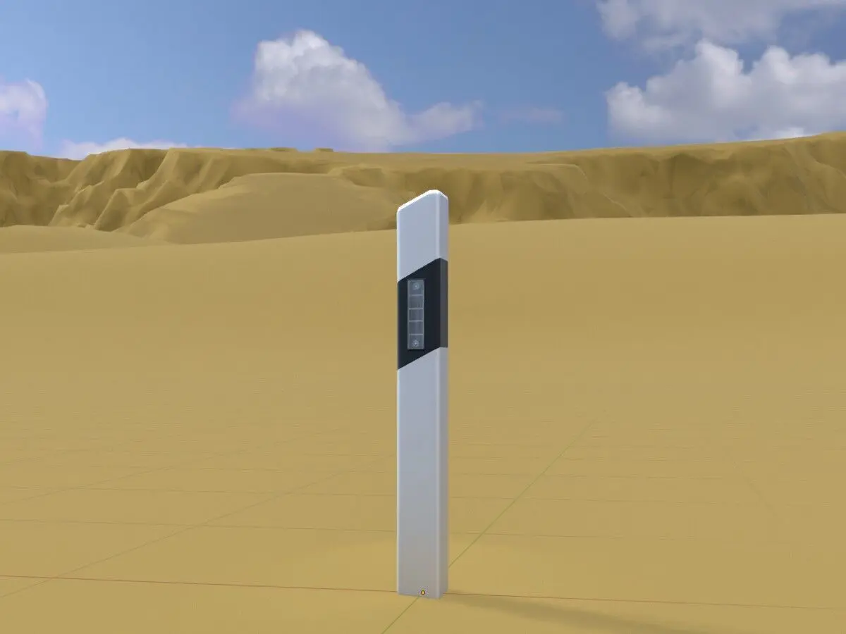 - Hier sehen Sie ein 3D-Modell eines Leitpfostens mit weissen Reflektoren für den links Fahrbahnrand.